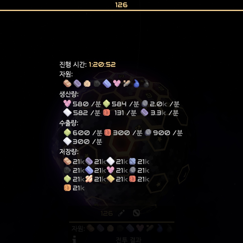 섹터 126에서 생산된 다양한 자원이 전초기지로 보내집니다.