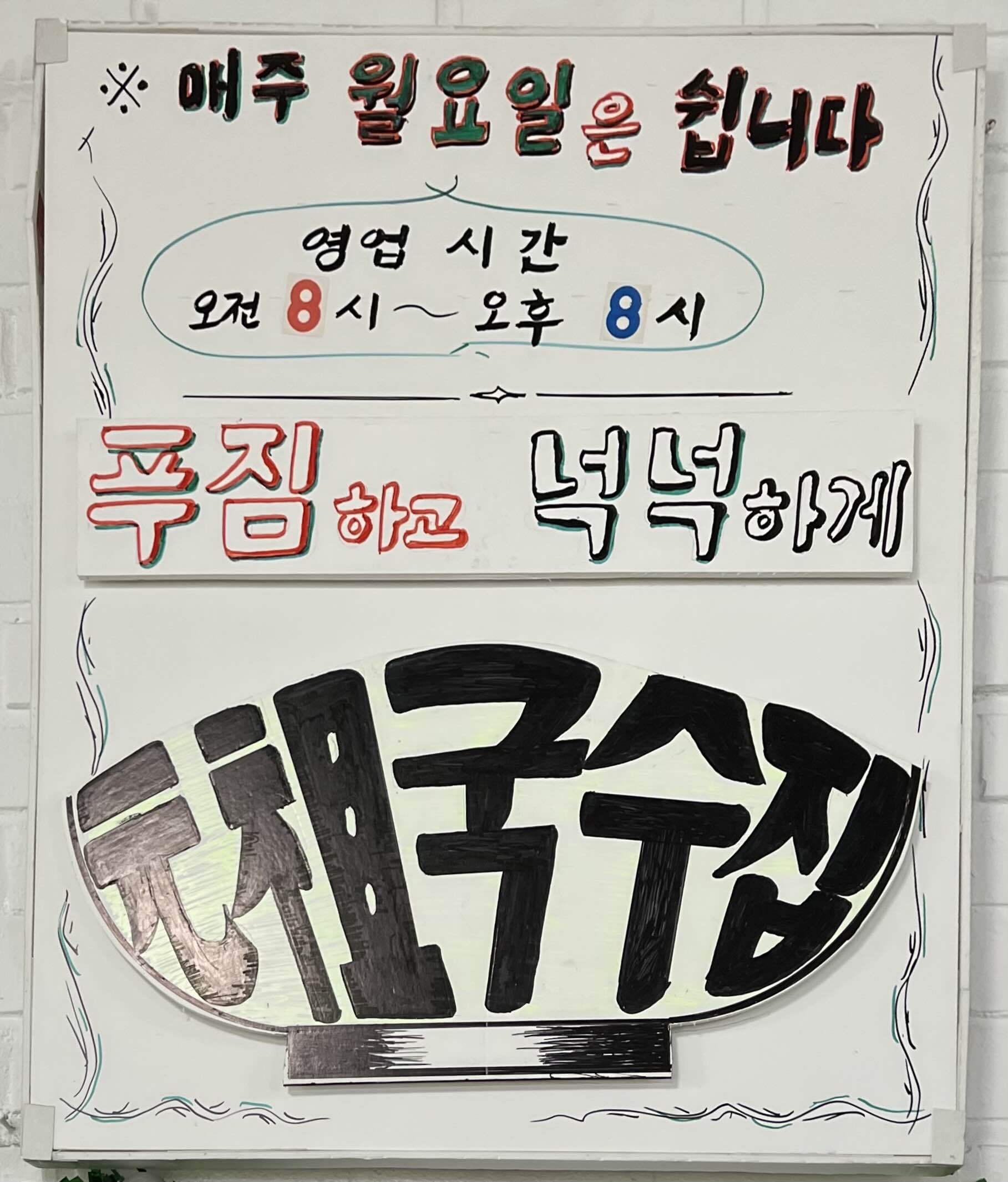 행주산성 원조 국수집의 영업 시간은 8에서 8까지 입니다. 여덟시에서 여덟시 까지 그리고 매주 월요일은 휴업합니다. “푸짐하고 넉넉하게”라는 안내를 꼭! 기억하세요.