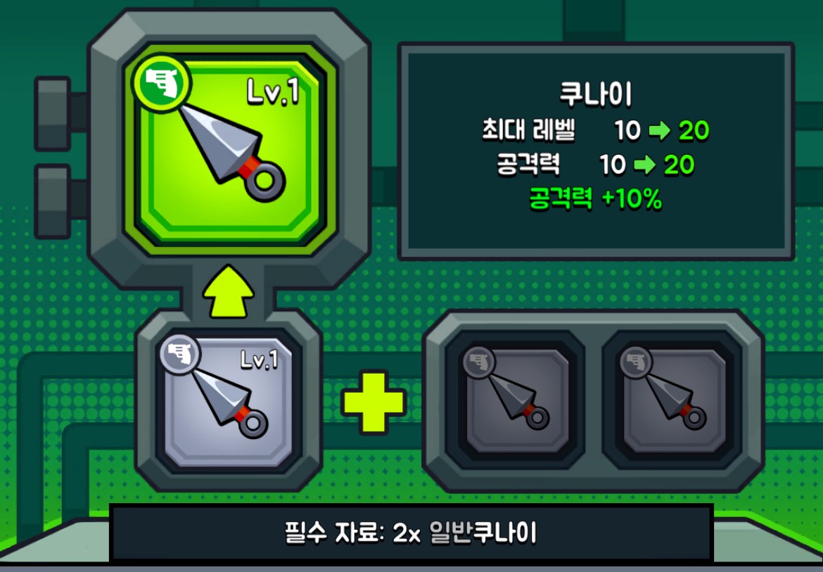 동일한 등급의 같은 아이템 세개를 합성하면, 해당 아이템을 다음 상위 등급으로 업그레이드할 수도 있습니다.