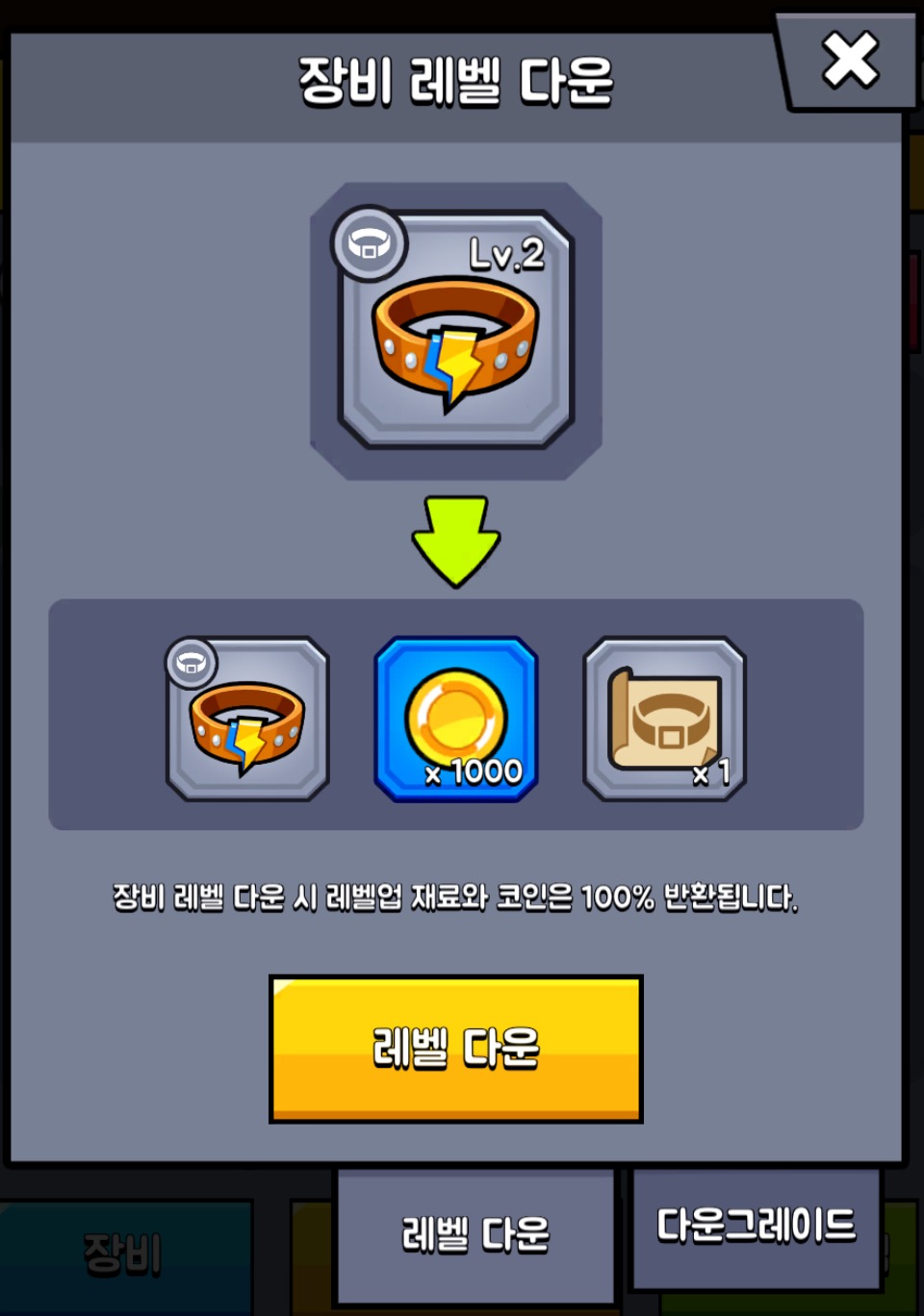 반대로 레벨과 다운그레이드를 통해 골드와 재료를 돌려받을 수 있습니다. 이건 상당히 좋은기능입니다! 레벨다운 & 다운그레이드 칭찬해요~