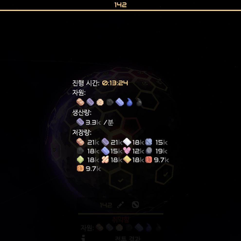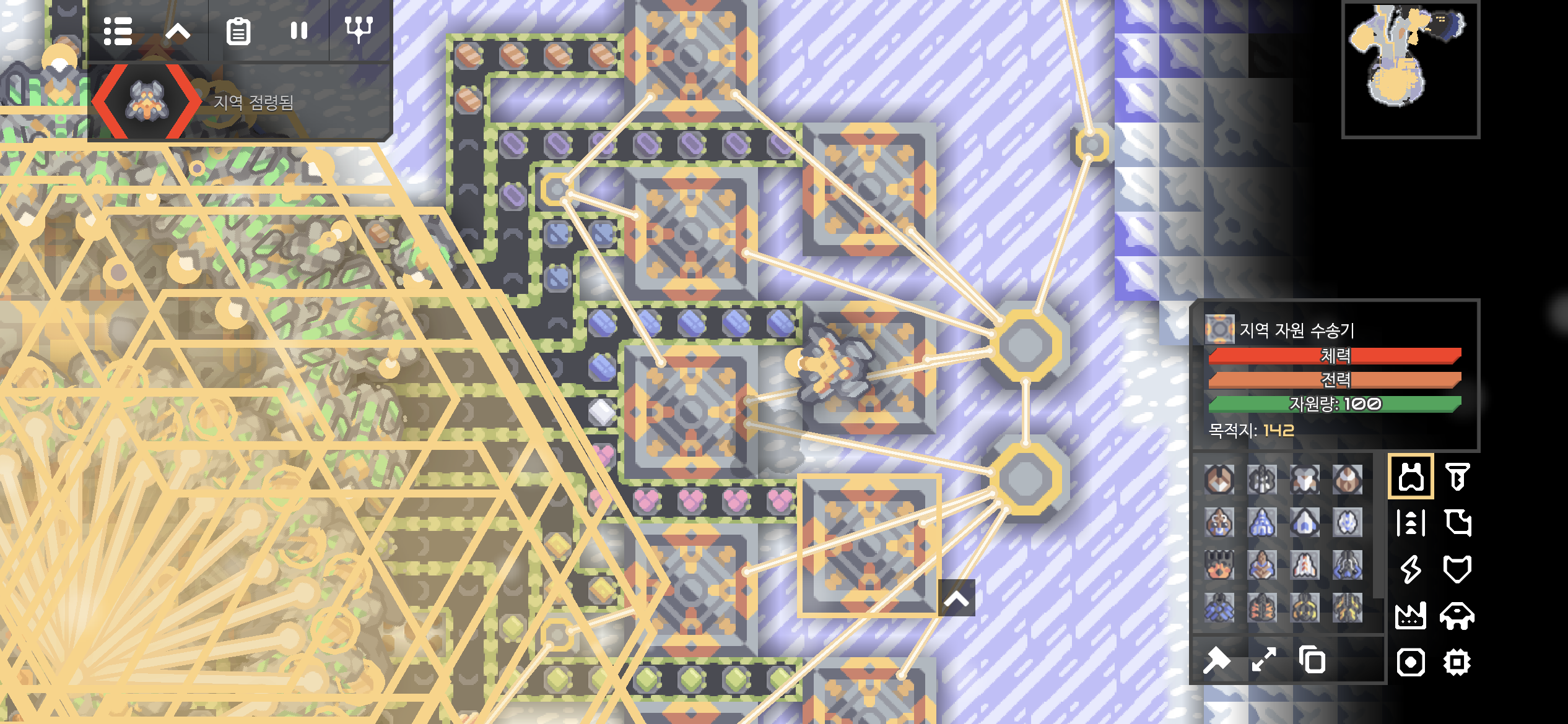점령한 섹터 142의 미니맵. 자원 생산 건물이 없어 공허합니다.