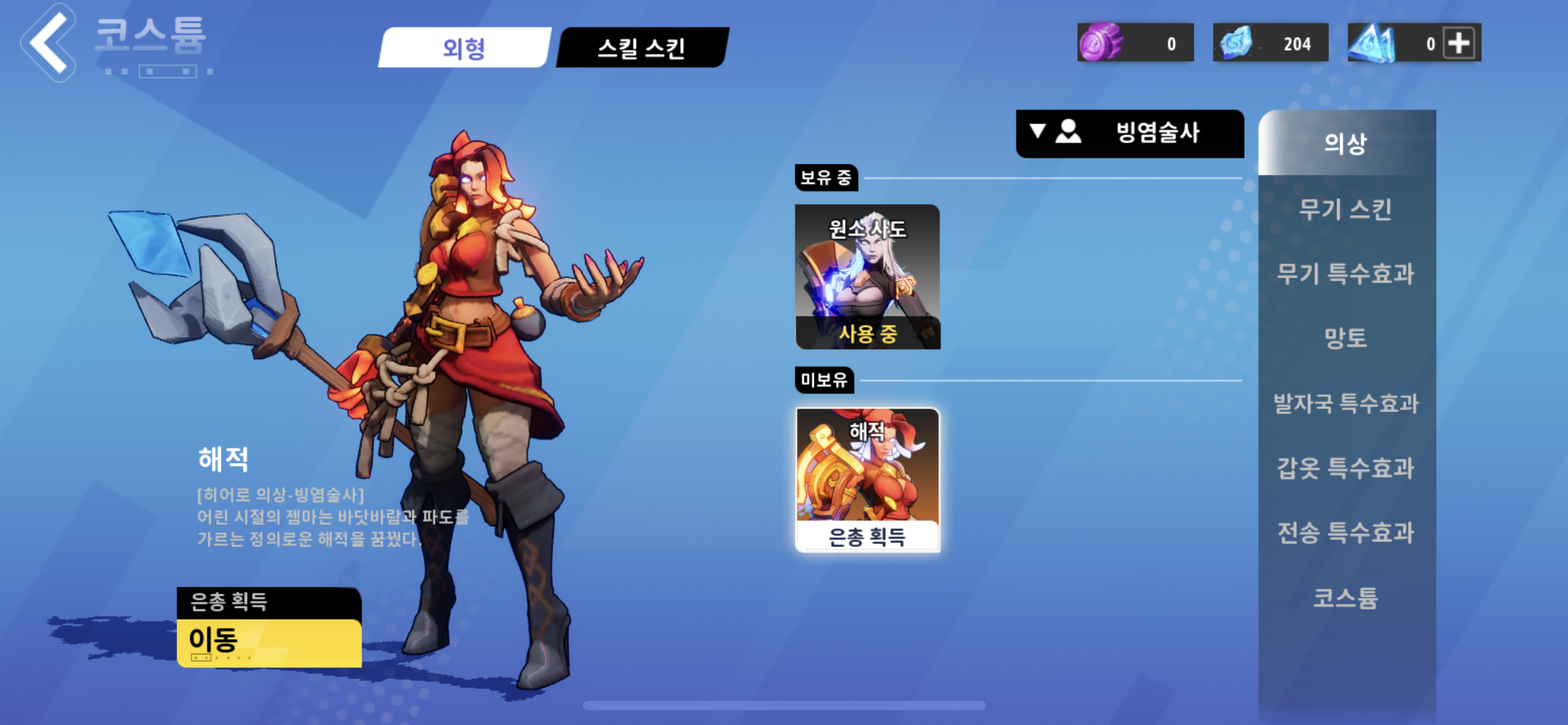 캐릭터가 장착할 수 있는 장비 슬롯은 열칸입니다. 쪼렙템이라 외형이 변하지 않나 싶었는데, 아쉽게도 외형 코스튬은 별도 구매네요.. 외형 코스튬 외에도 무기, 망토, 발자국, 갑옷, 전송 특수효과 등의 여러 특수 효과들이 있습니다.