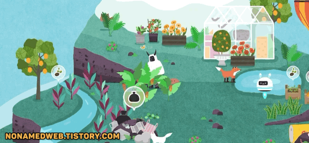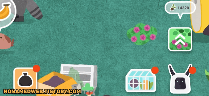 배치된 동물들은 무작정 돌아다니지만 식물과 장식(특수 식물)은 모두 위치 이동이 가능합니다. 식물과 장식을 배치하여 본인이 원하는 예쁜 섬으로 만들 수 있어요.