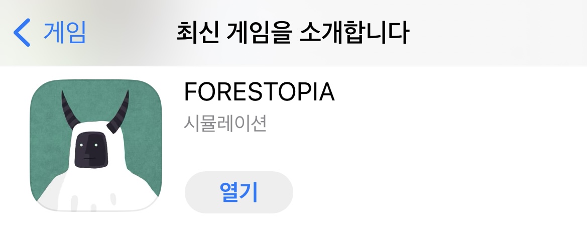 2022-10-19 기준, 앱스토어 최신 게임으로 소개된 FORESTOPIA 입니다. Forest와 Utopia가 합쳐진 것으로 보이는,, Forestopia라는 예쁜 이름입니다.