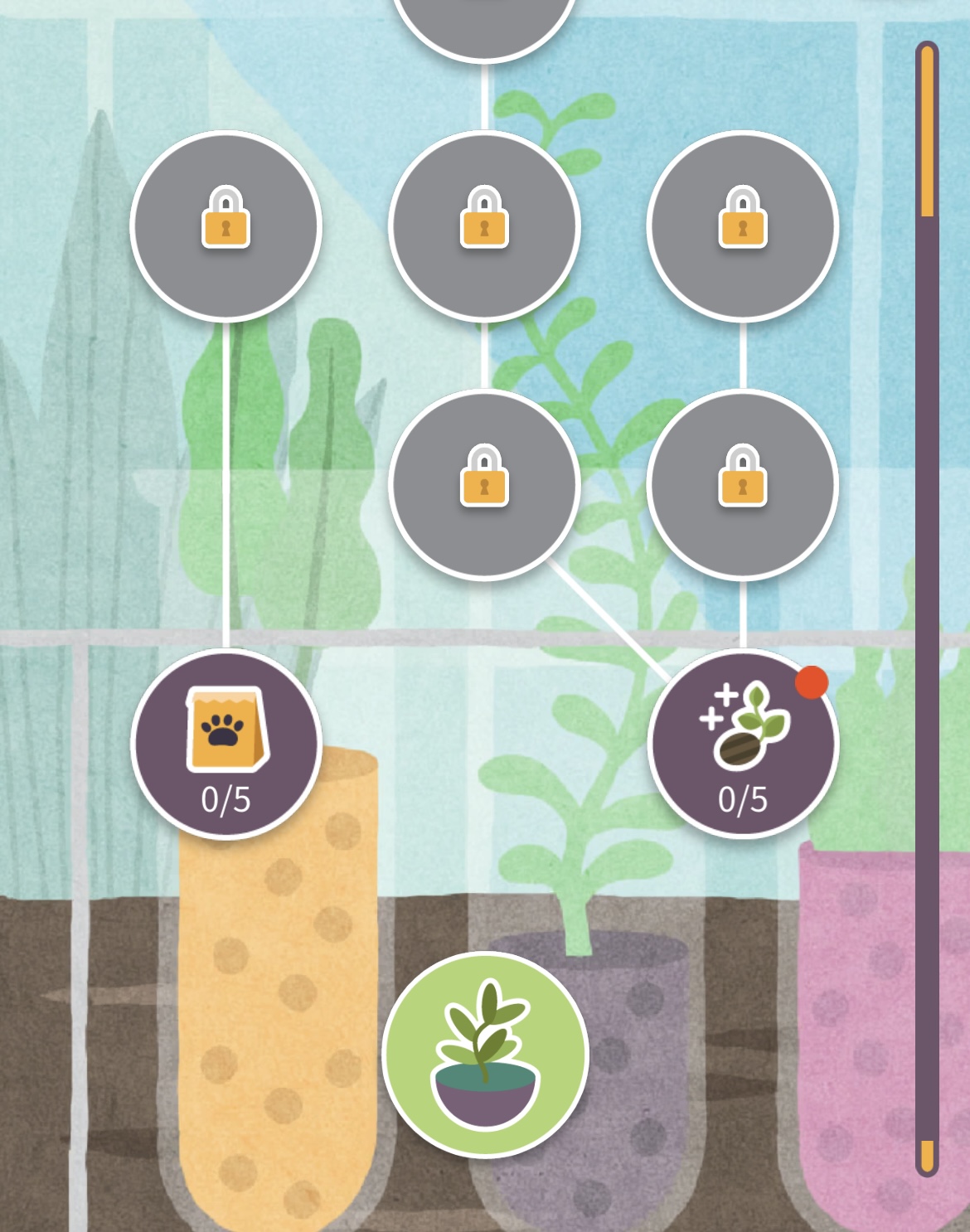 식물/동물/여행(미니 게임) 별로 실험실(일종의 스킬 트리)이 있습니다. 메인 퀘스트를 달성하면 스킬 포인트로 볼 수 있는 ‘동물 코인’을 받는데 이 코인을 사용해 실험실의 여러 항목들을 연구할 수 있습니다.