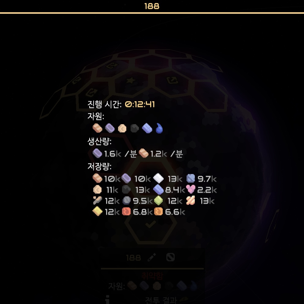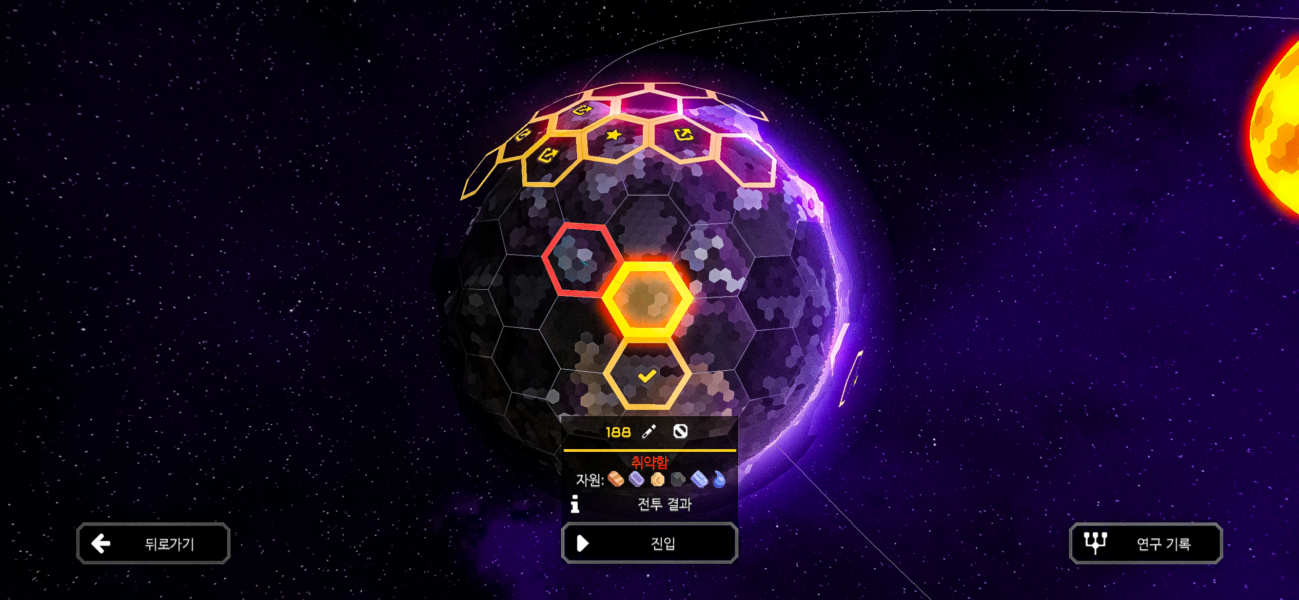 점령한 섹터 188과 인접한 적 기지가 하나 있네요! 자원 출격을 섹터 188에 미리 받아둘걸 그랬습니다.