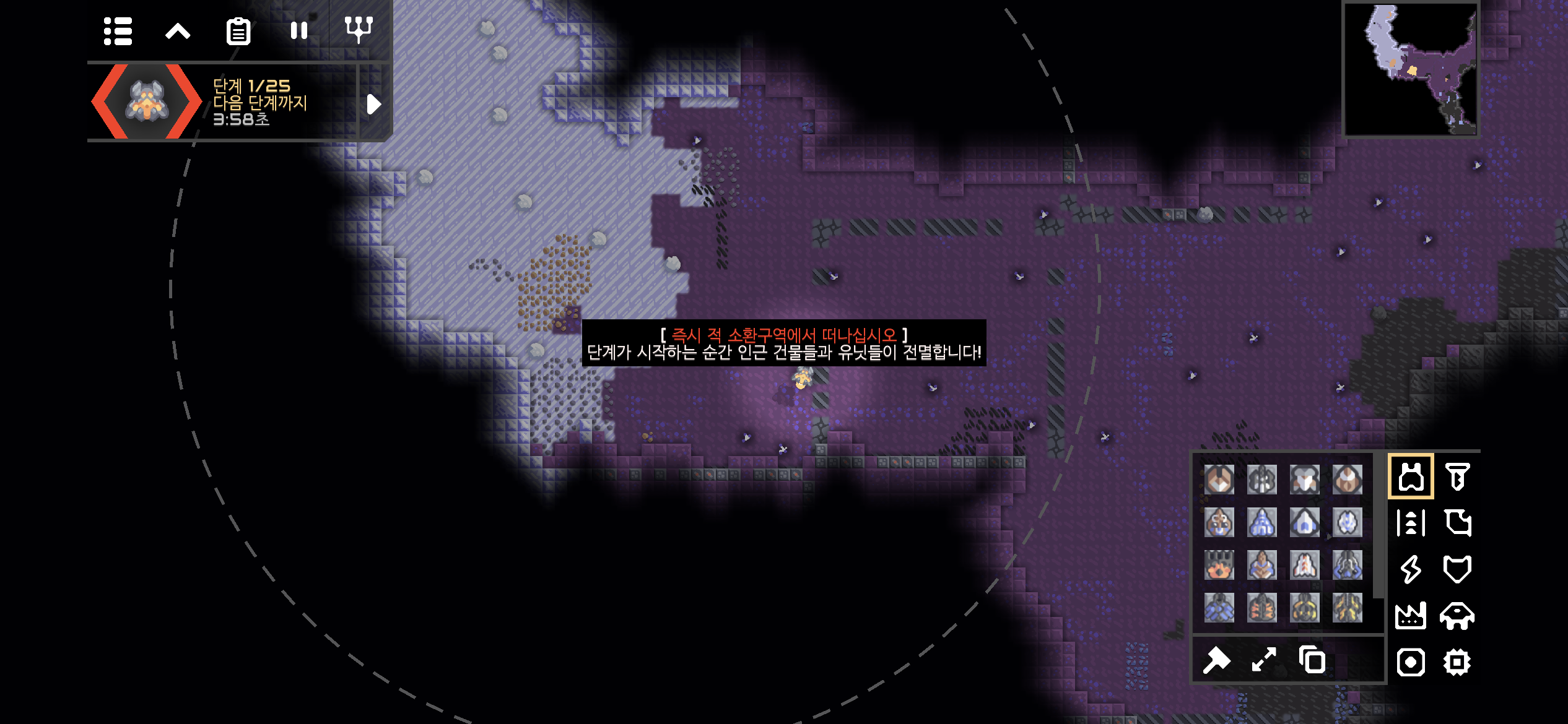 적을 모두 막아낸 섹터 188 미니맵. 생산 건물이 없으니 여기저기가 공허하네요.