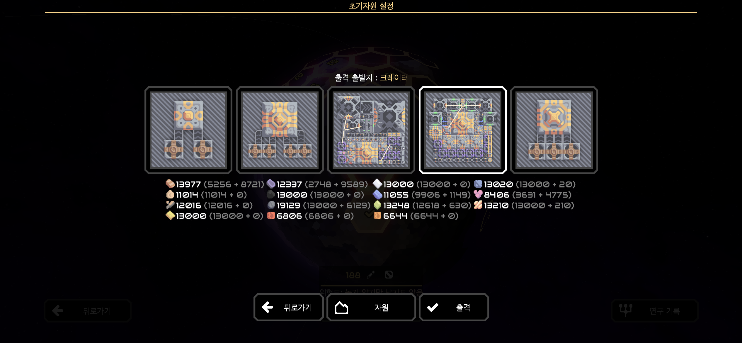 자자, 출격에 앞서 크레이터의 자원을 채워둬야겠죠.