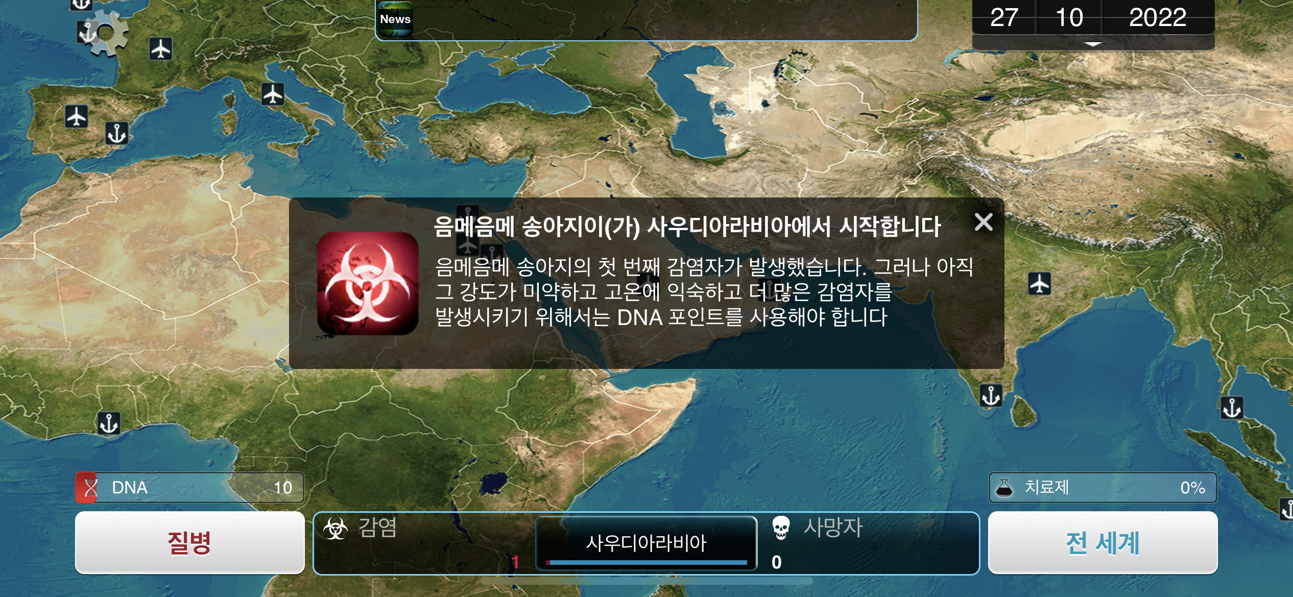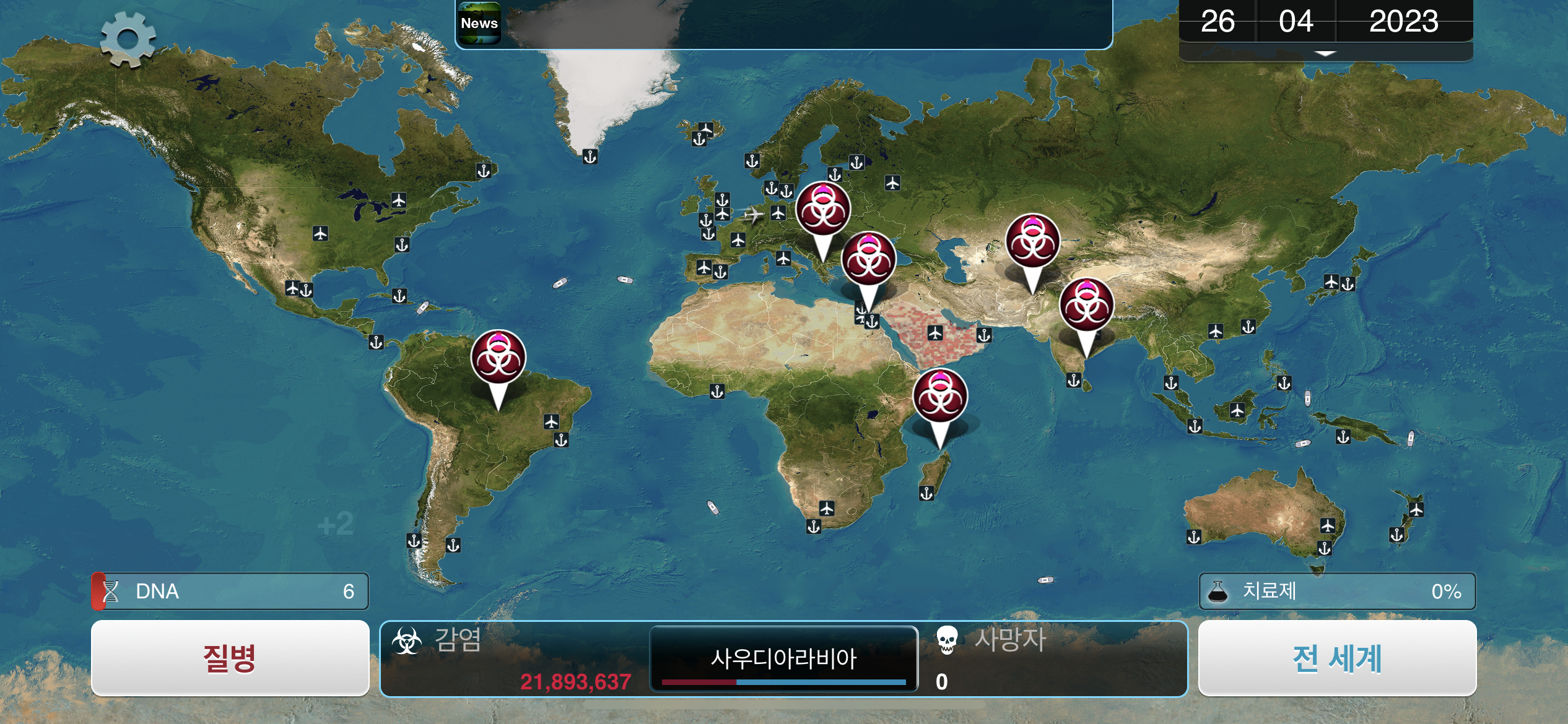 17. 2023년 4월 26일. 사우디아라비아는 2천만명 이상이 감염되었습니다. 곰팡이균의 능력인 포자 폭발 여섯개를 한번에 진화해 여섯개의 국가가 감염되었습니다.