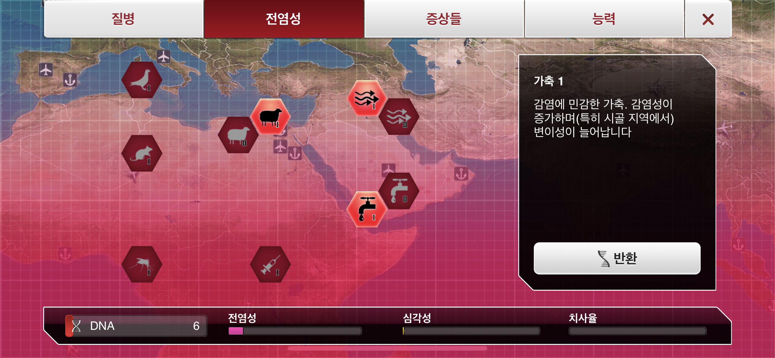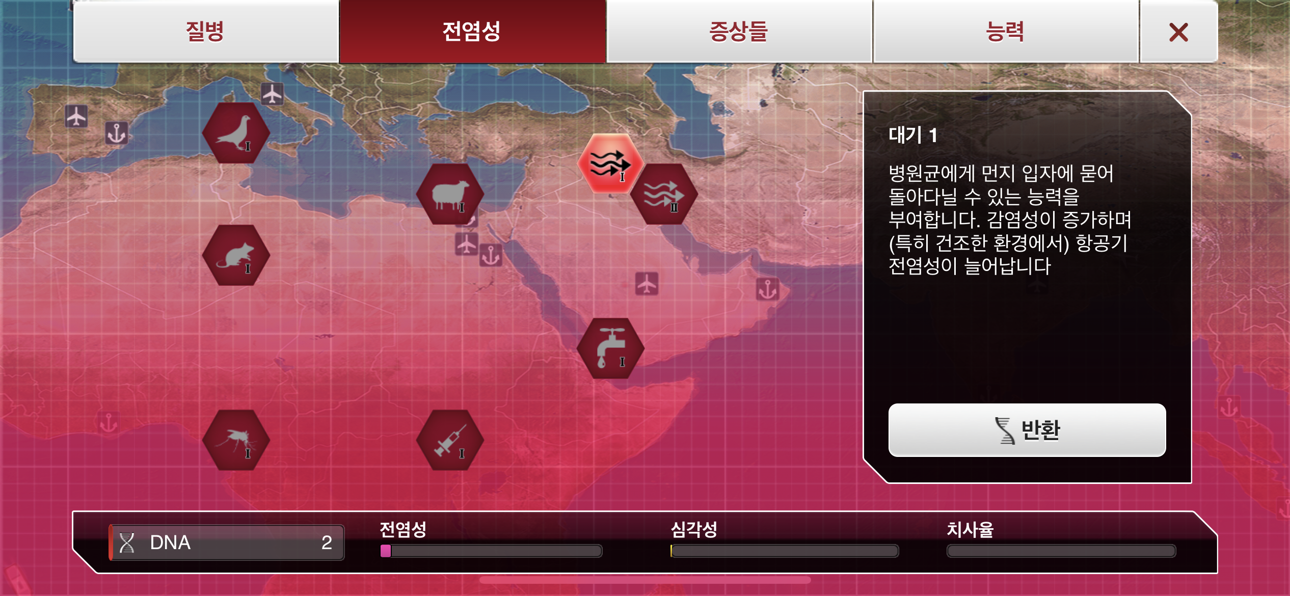 3. 곰팡이균 질병 타입에 대해 간단한 설명이 나오네요. 능력을 진화해야한다는 팁이 나옵니다.