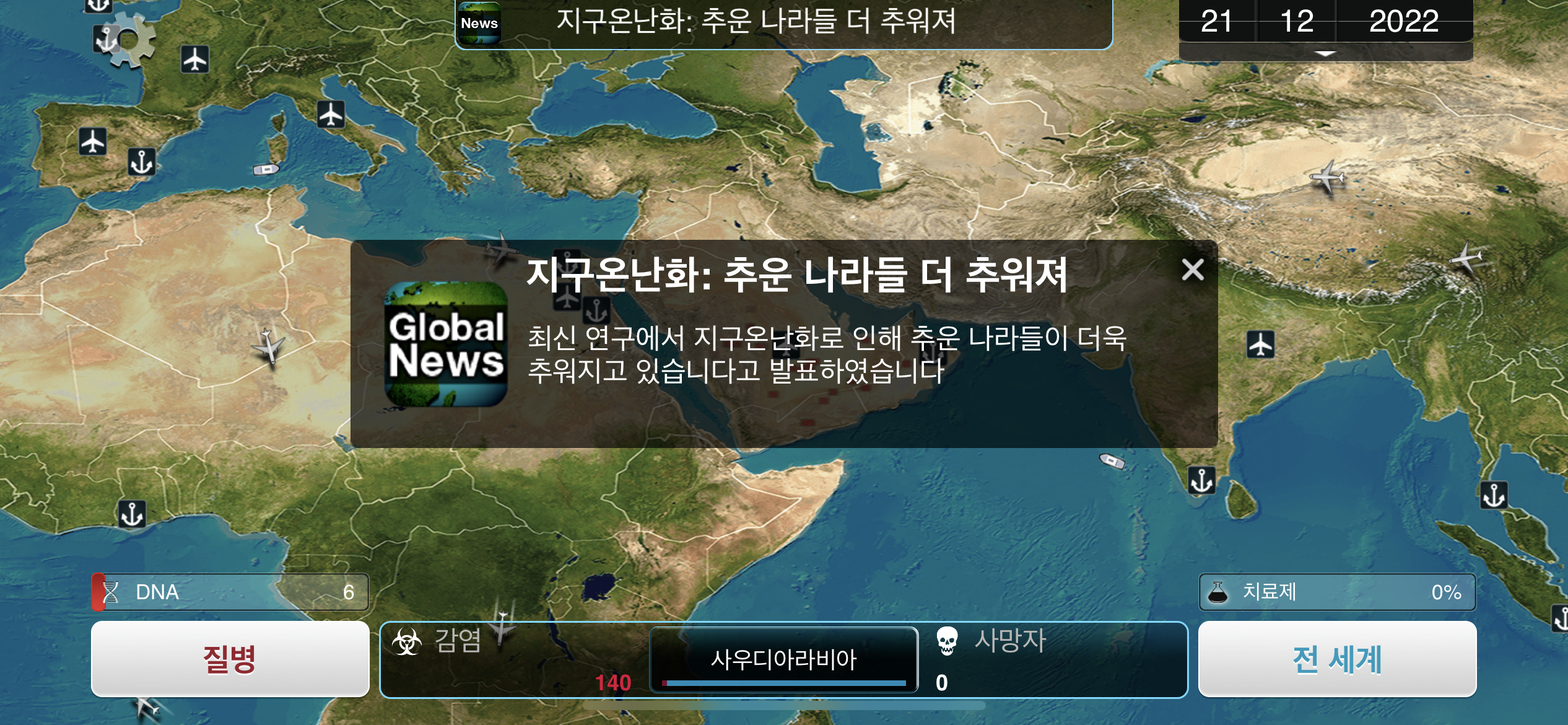 6. 2022년 12월 21일. 시작국가인 사우디아라비아에서 감염자수가 조금씩 늘고 있습니다. 글로벌 뉴스로는 지구온난화로 인해 추운 나라들이 더 추워진다고 합니다.