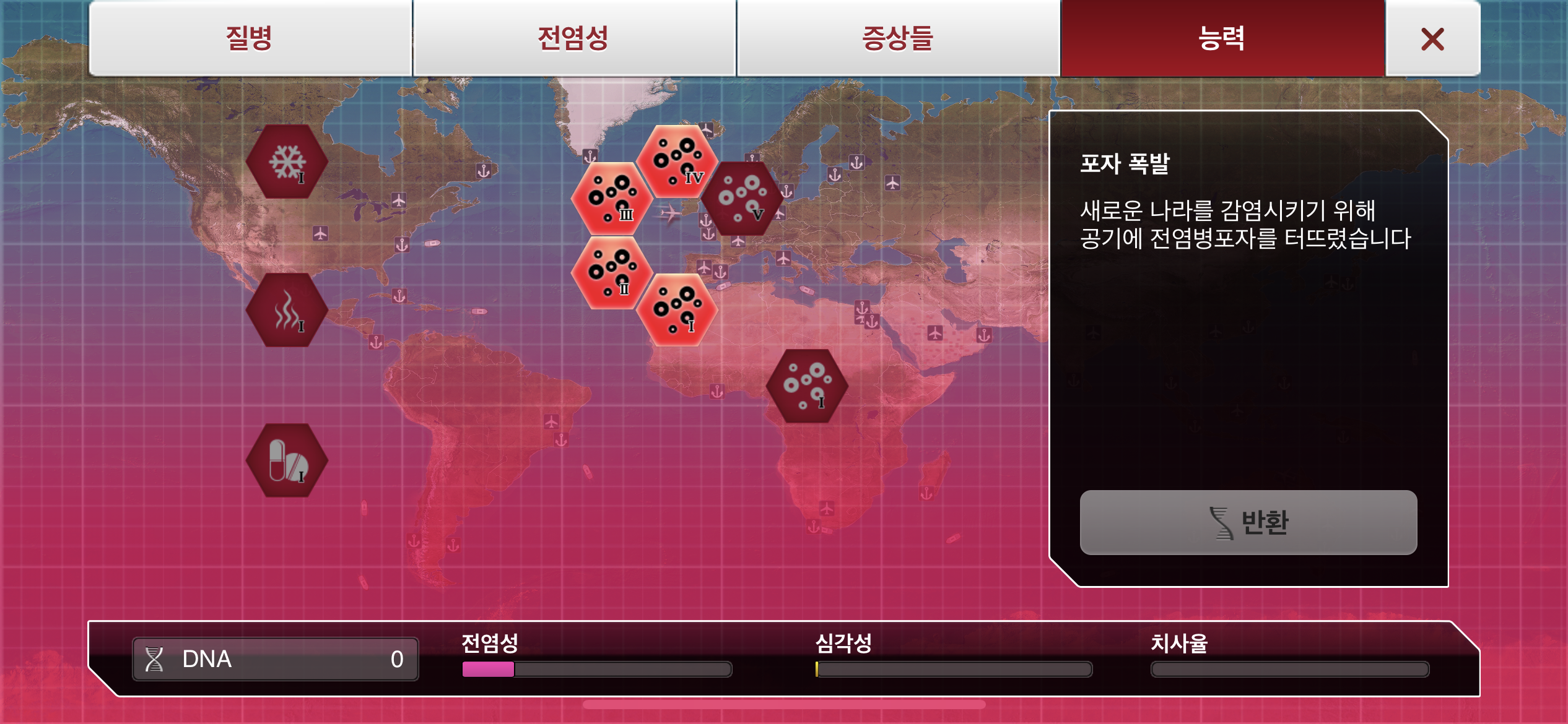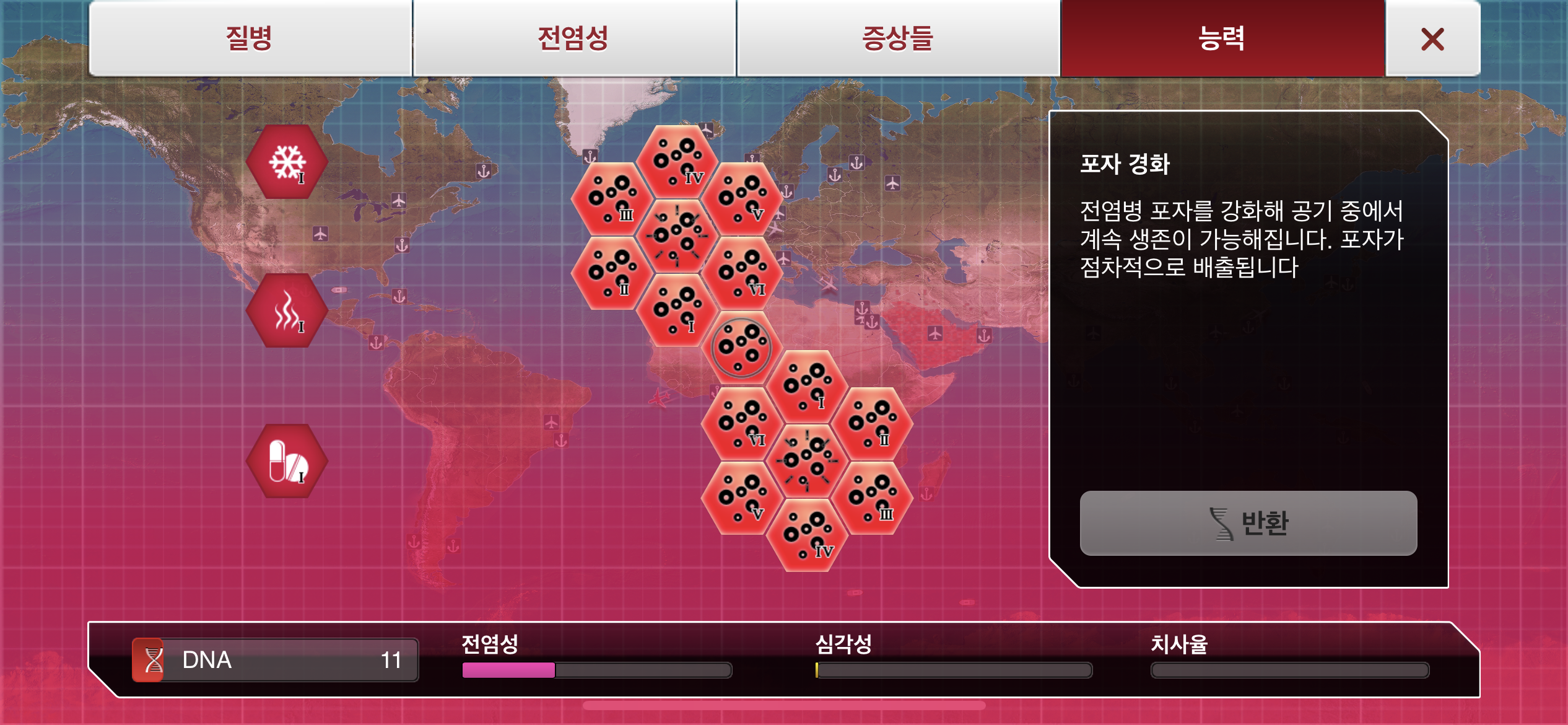 3. 곰팡이균 질병 타입에 대해 간단한 설명이 나오네요. 능력을 진화해야한다는 팁이 나옵니다.