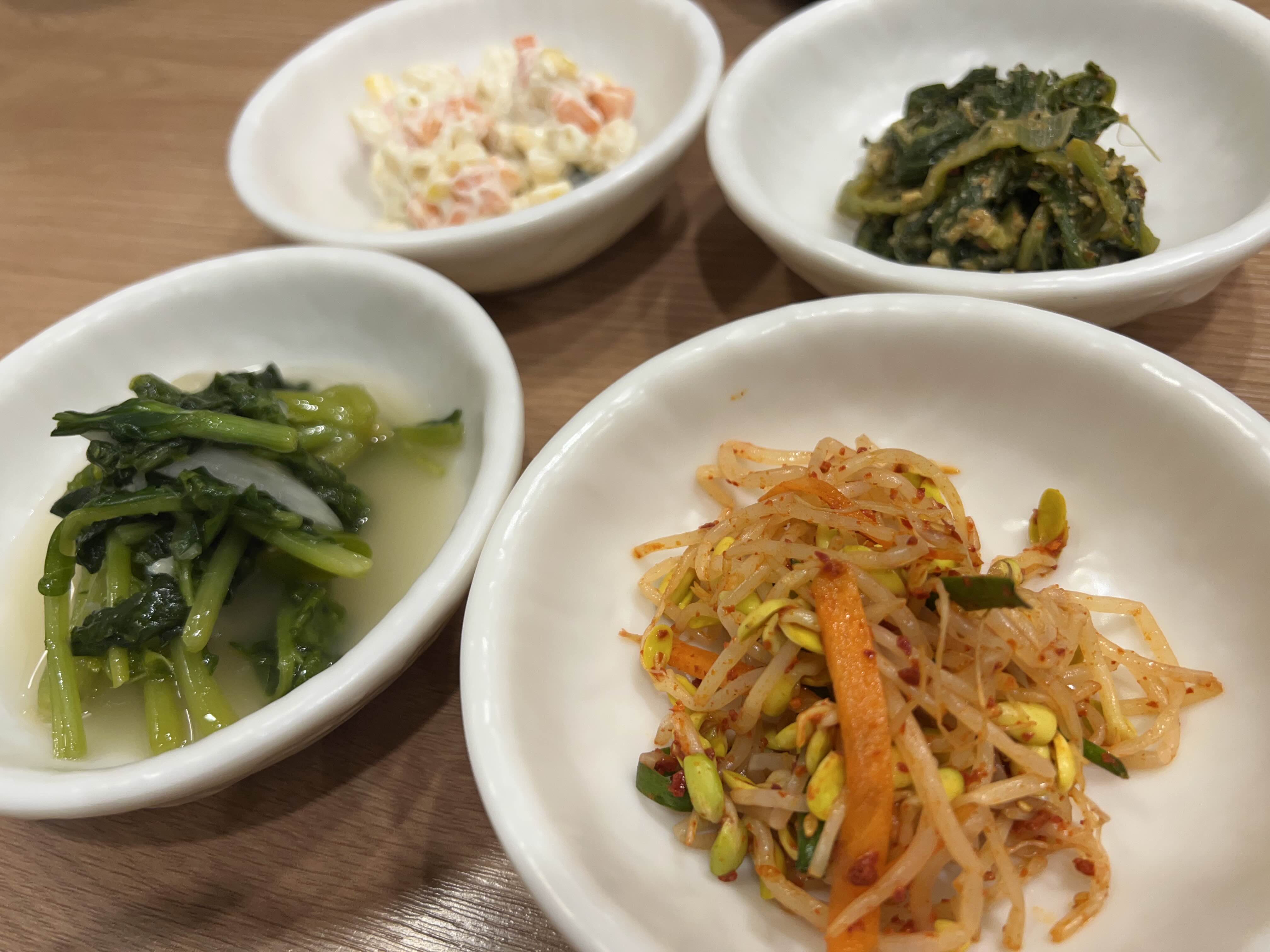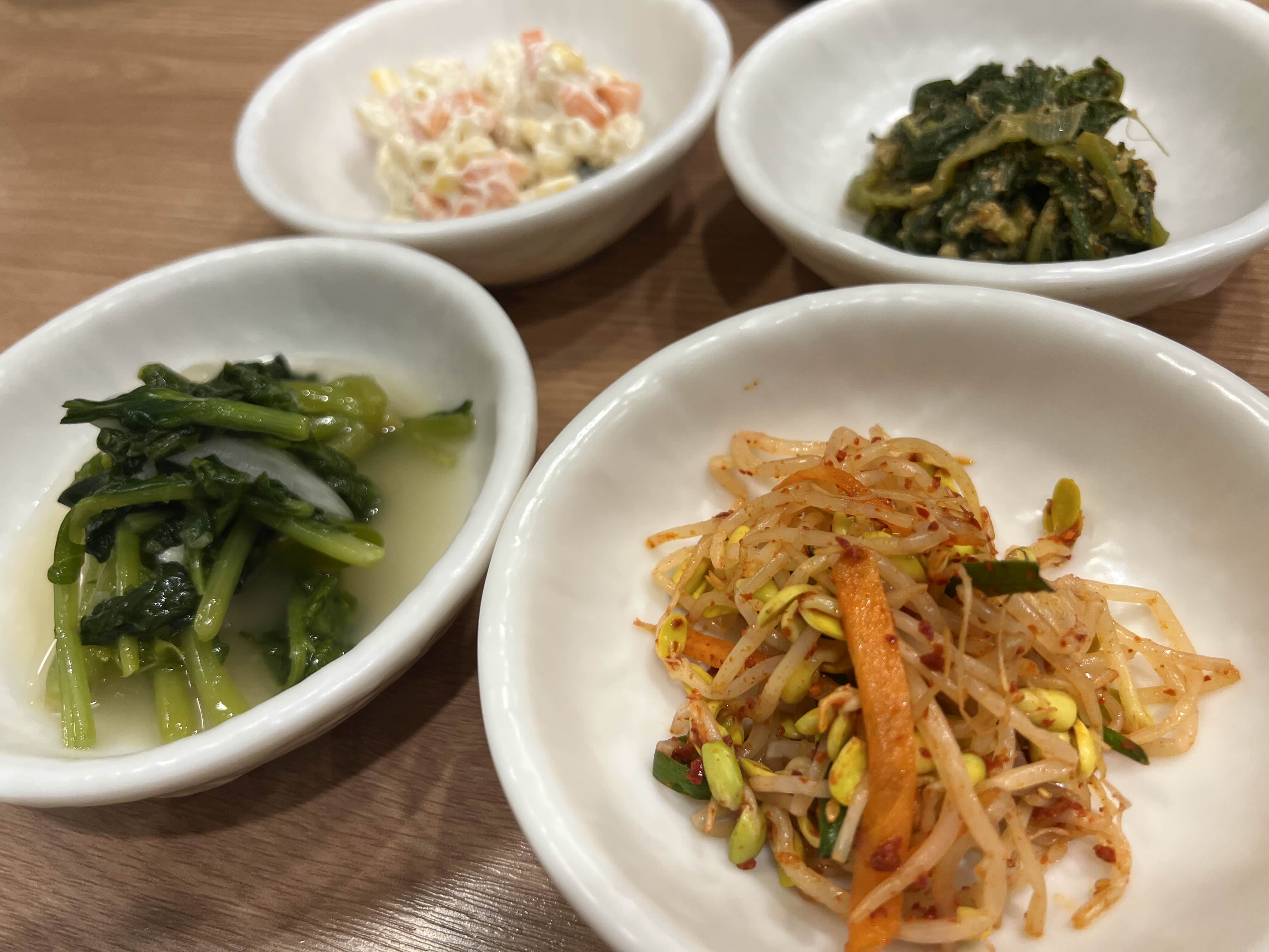 주문이 들어가면 밑반찬이 나옵니다. 계절에 따라 조금씩 달라지는 밑반찬인데, 직접 만드시는지 맛이 아주 좋습니다.
