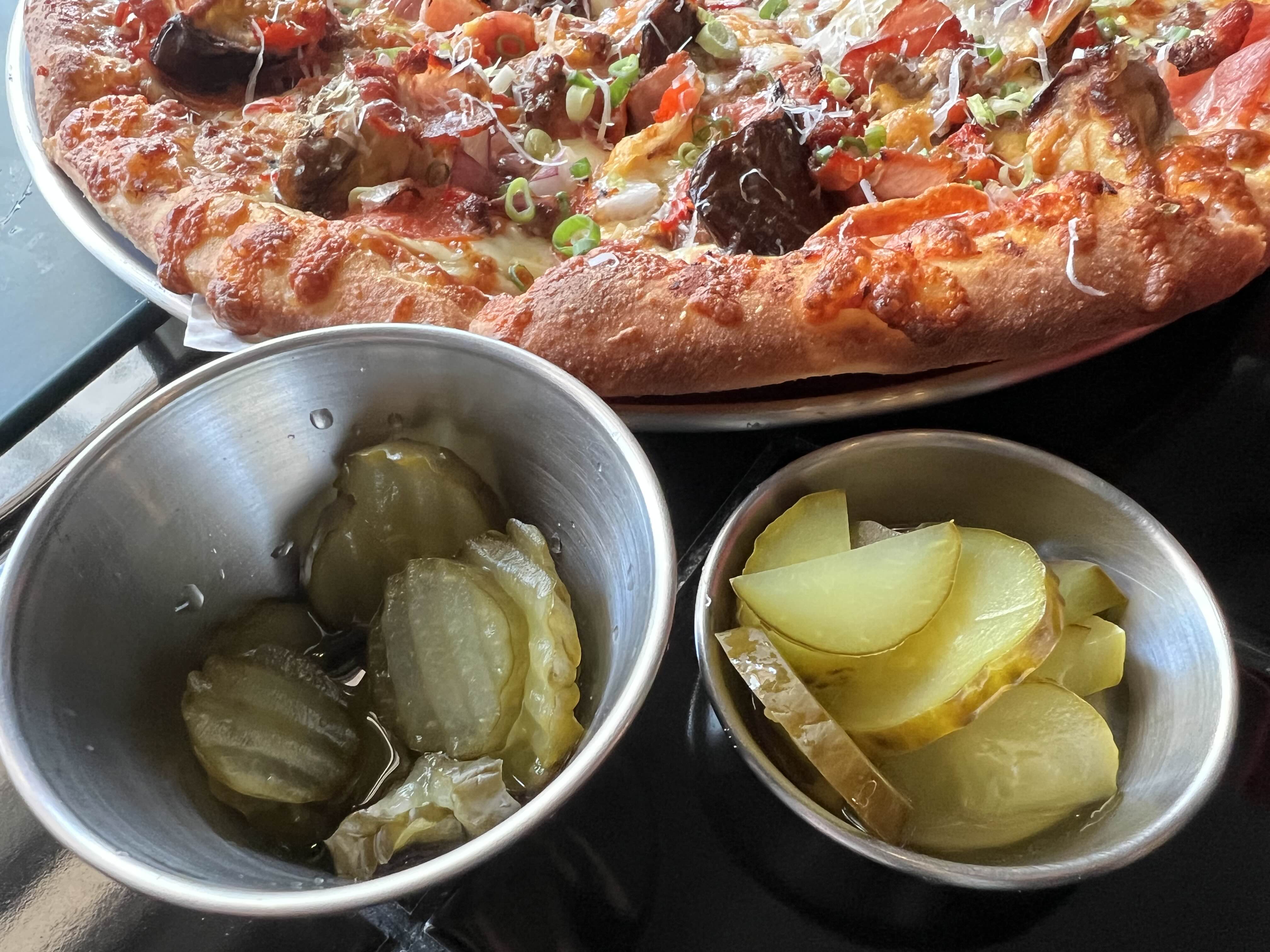 게토 뉴욕 피자는 기본 피클과는 다른 딜 피클이 함께 나옵니다. 식감이 탱글탱글한 젤리 같았고 시큼한 맛은 덜하며 맛이 부드럽습니다. 딜 피클과 함께 먹는 뉴욕 피자는 서울 피자와 쌍벽을 이룰만큼 맛이 훌륭합니다..!