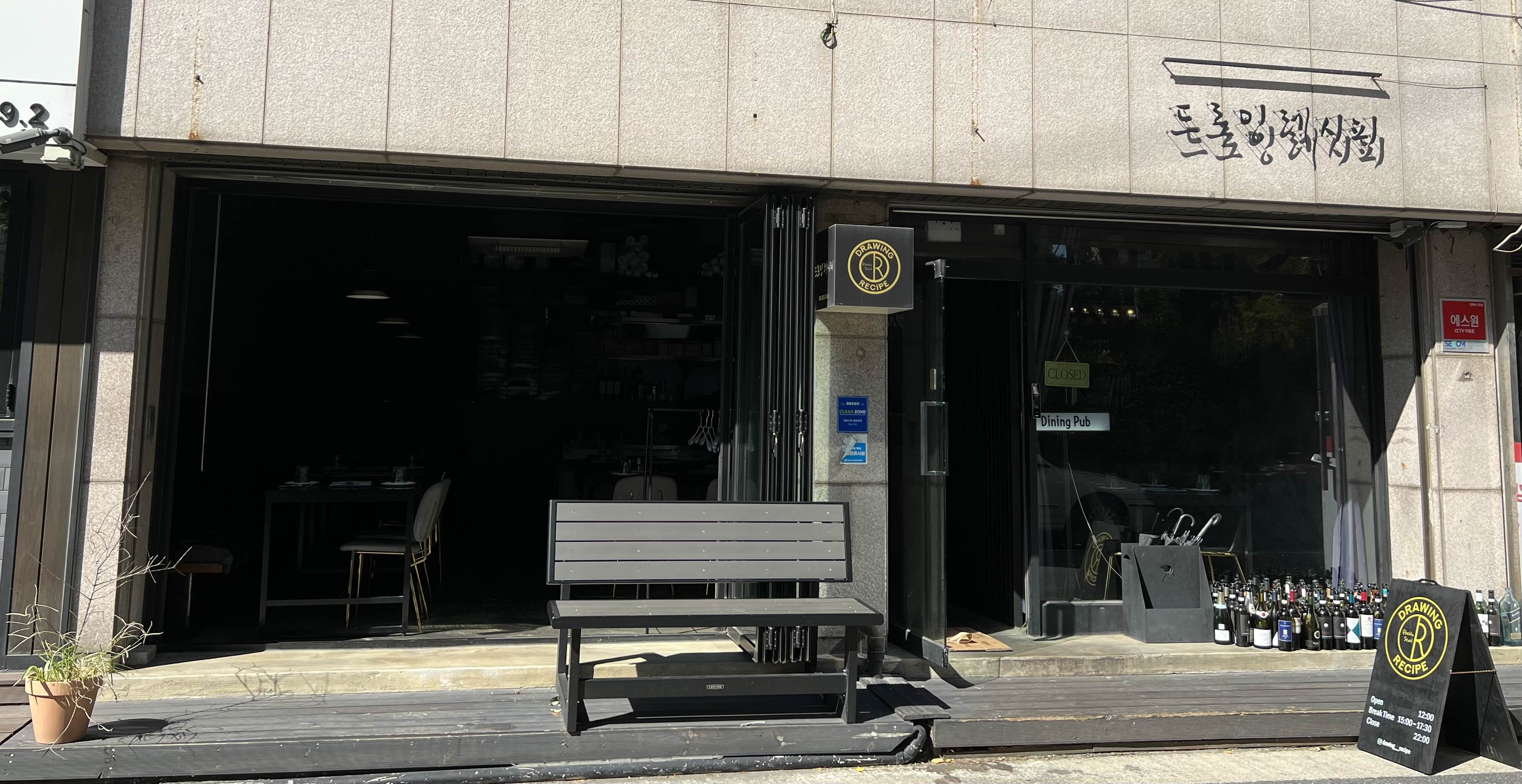 건대 입구역 근처에 있는 “드로잉 레시피”입니다. 휴가를 쓴 점심 시간에 방문했습니다. 낮에도 예쁘지만 밤이 되면 식당 테이블마다 촛불이 켜지며 더 예뻐집니다.