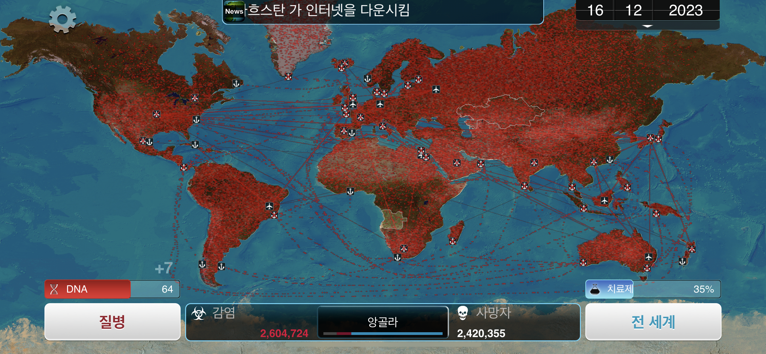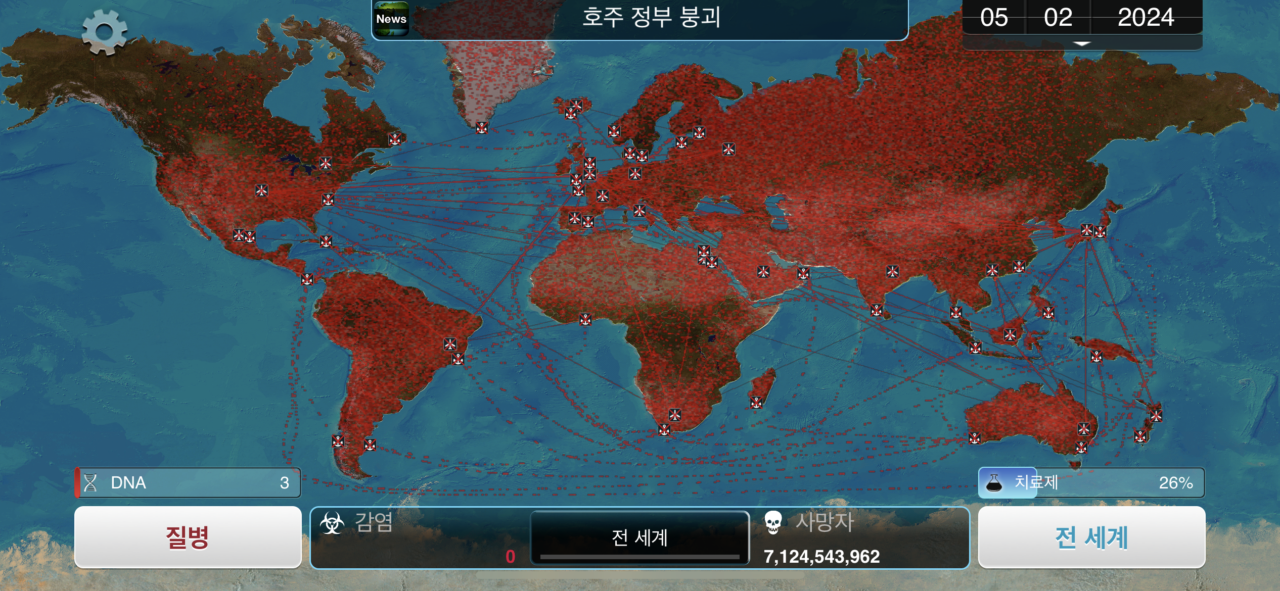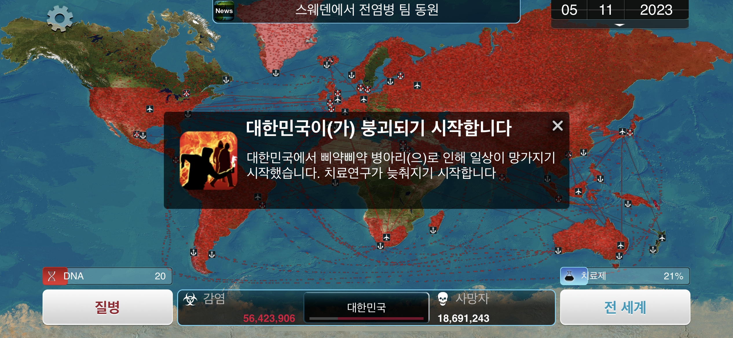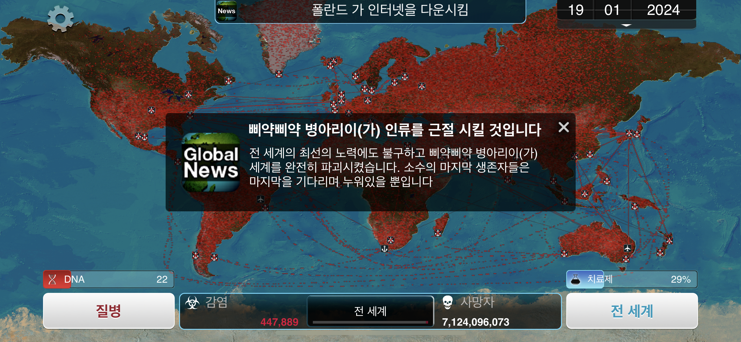 24. 2023년 9월 29일. 세계 인구 22억명이 감염되었습니다. DNA 포인트를 사용해 진화하려 했던 총체적 장기부전 증상이 돌연변이됩니다.