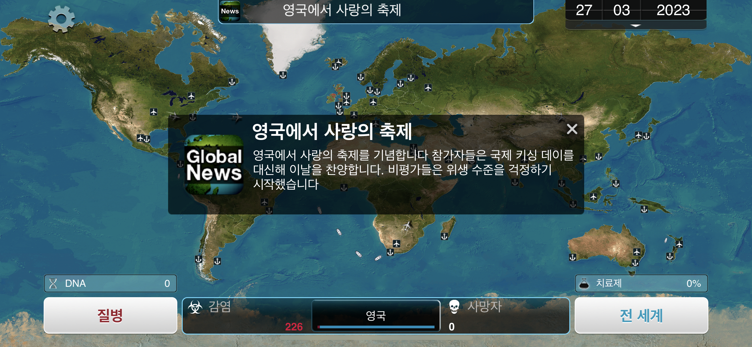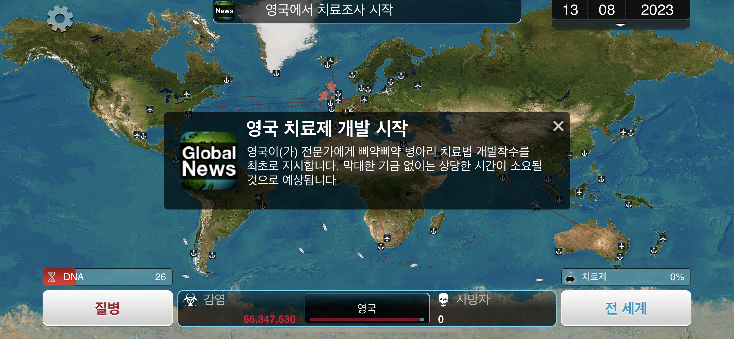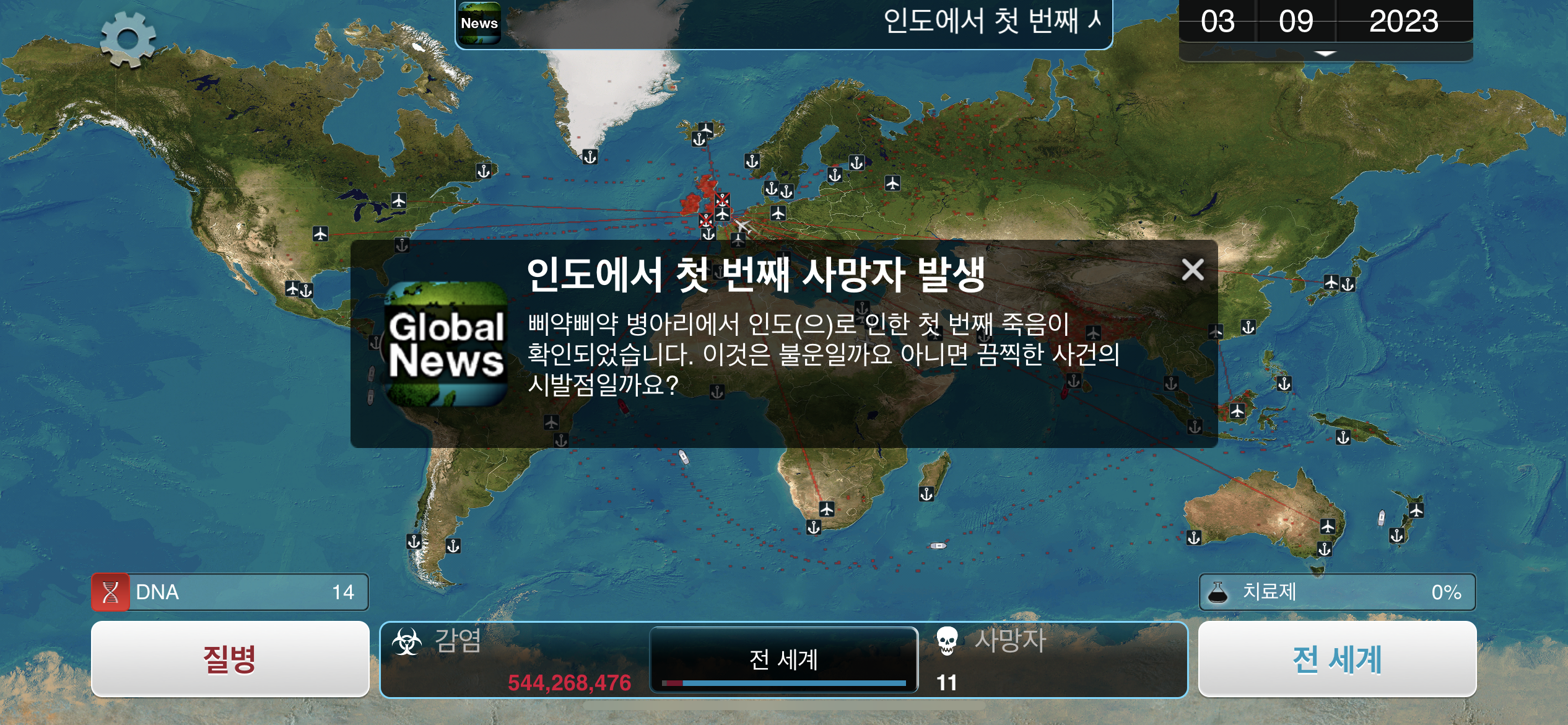 21. 2023년 9월 9일. 영국에서 뒤늦게 항구를 폐쇄합니다. 전 세계 감염자 수는 15억 입니다.