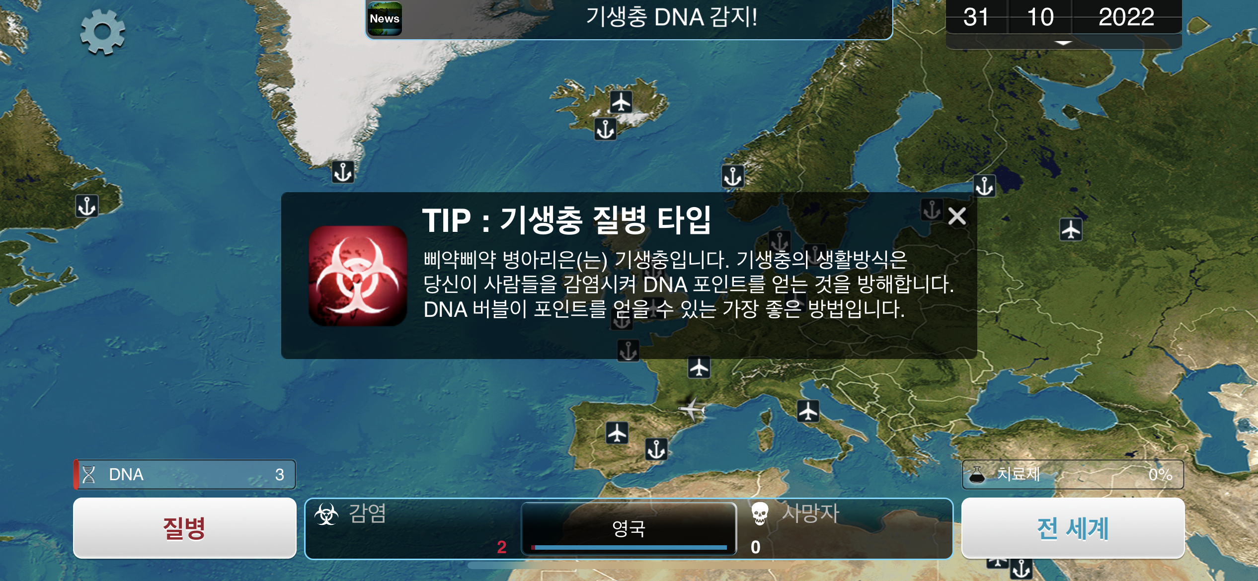 2. 2022년 10월 31일. 기생충 질병 타입에 대한 팁이 안내됩니다. 영국의 감염자가 1명 더 늘었습니다.