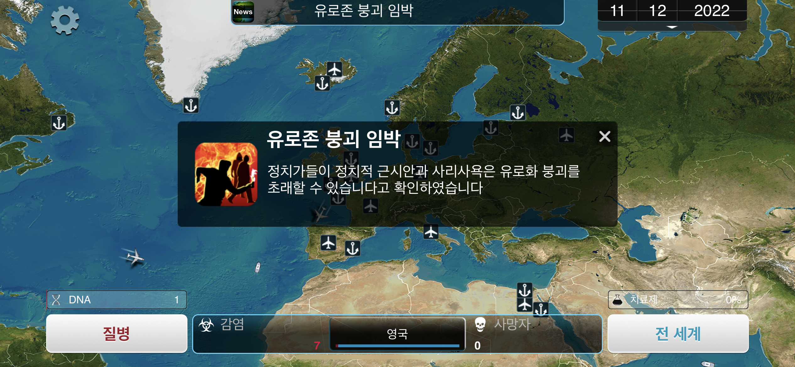 5. 2022년 12월 11일. 정치가들의 문제로 유로존 붕괴가 임박했다는 소식입니다. 어느곳이나 정치인들이 문제입니다. 영국의 감염자 수는 일곱명까지 늘었습니다.