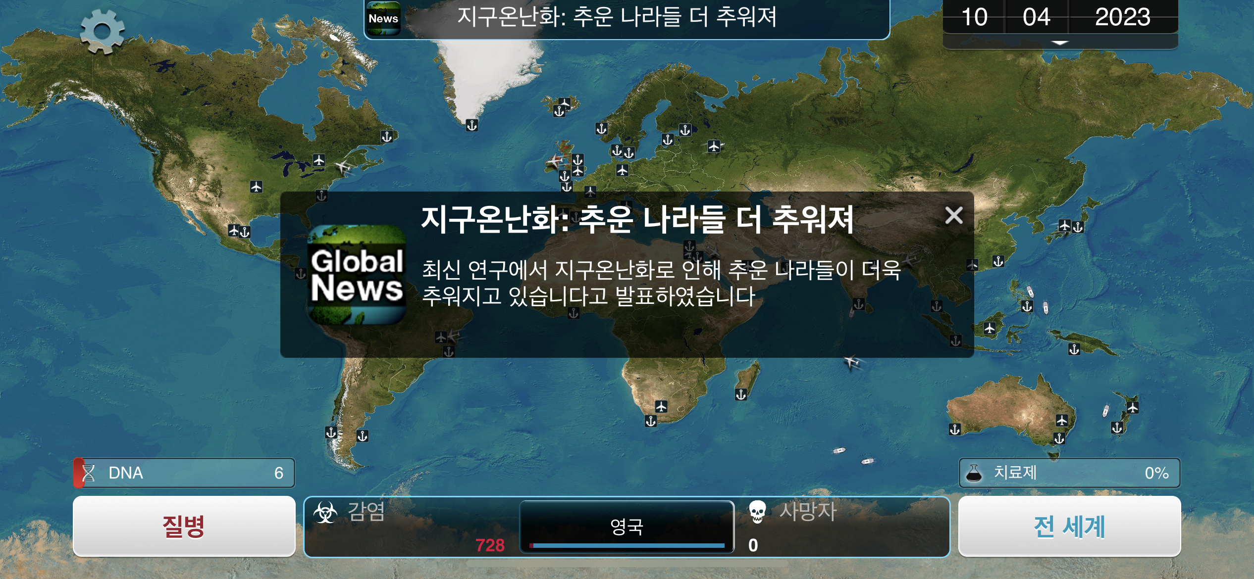 8. 2023년 4월 10일. 지구온난화로 인해 추운 나라들이 더 추워지고 있다는 뉴스입니다. 영국의 감염자 수가 조금씩 늘어나고 있습니다.