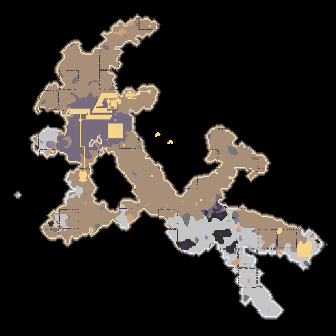 섹터 191 미니맵입니다. 위험도가 낮을수록 단조로워지는 느낌입니다. 구리 납 고철만이 존재하는 지형입니다.