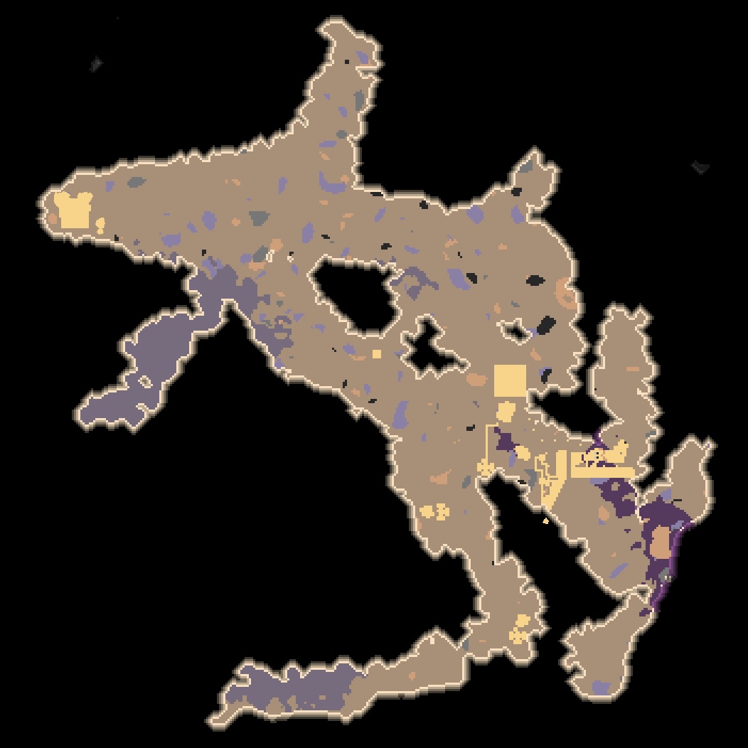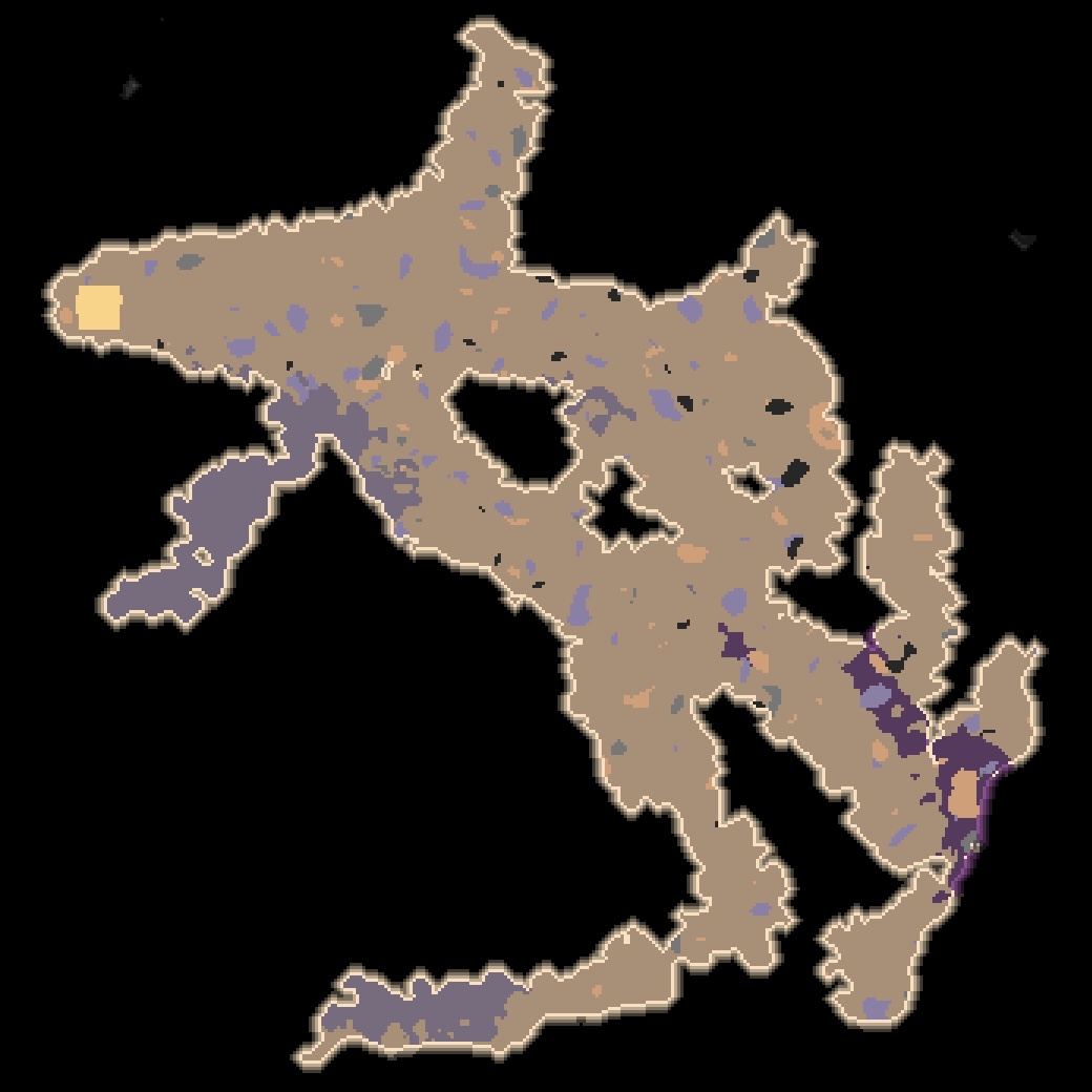 섹터 192 미니맵. 구리 납 석탄 고철 외엔 자원이 없네요.