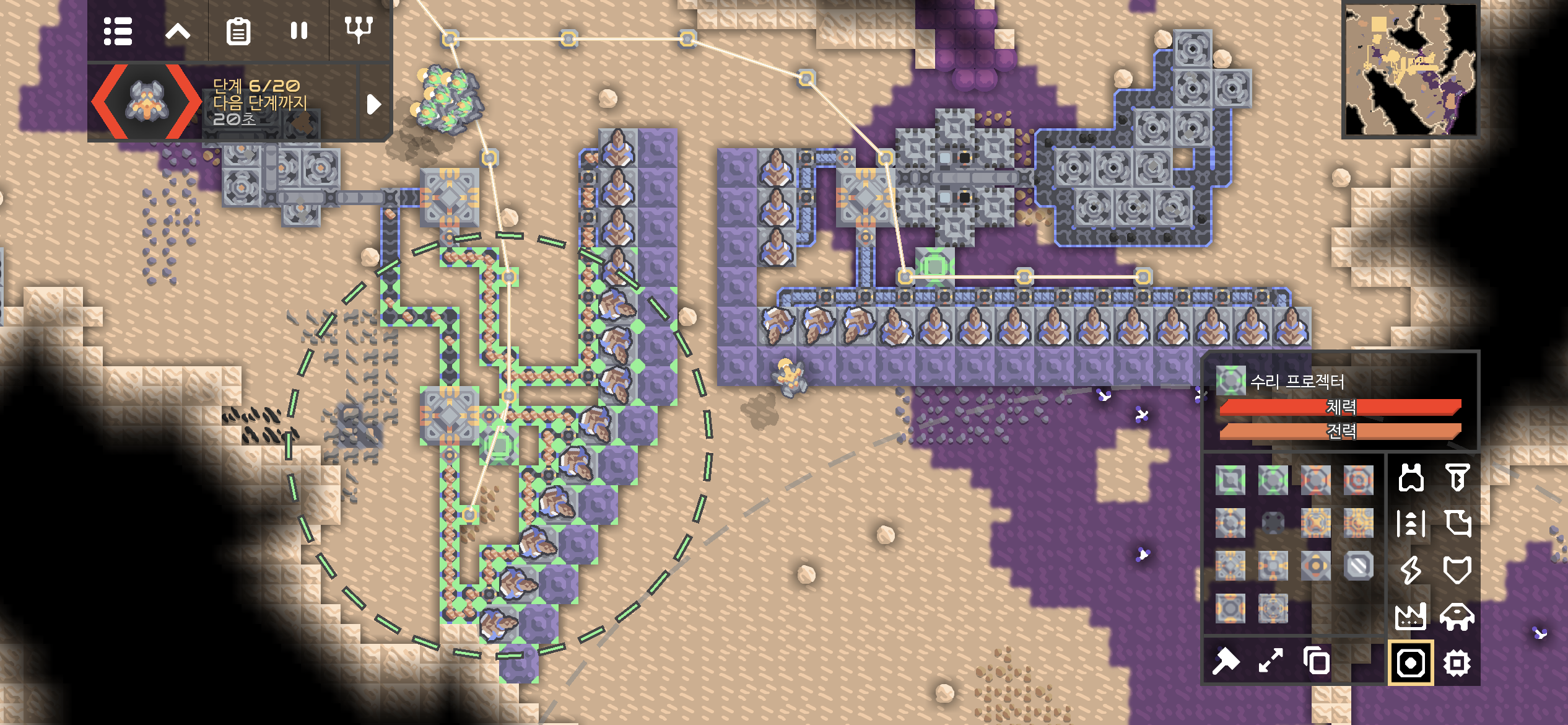 디펜스 라인에 배치된 수리 프로젝터로 전력을 공급하면 나름대로 완성도가 있는 디펜스 라인이 됩니다.