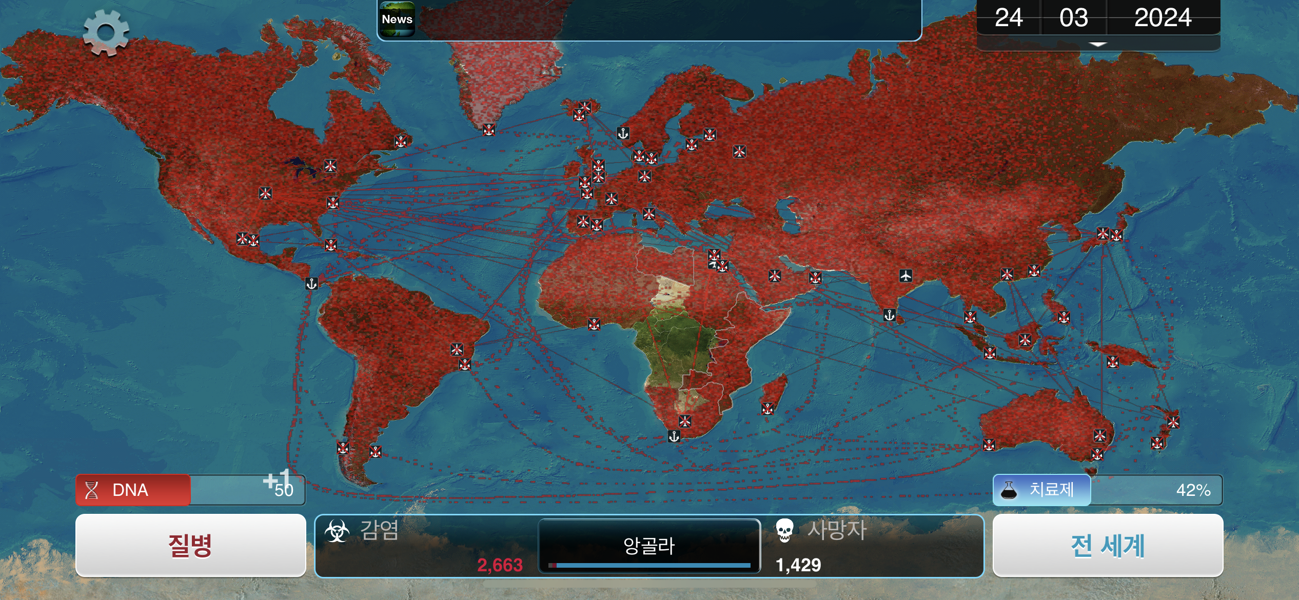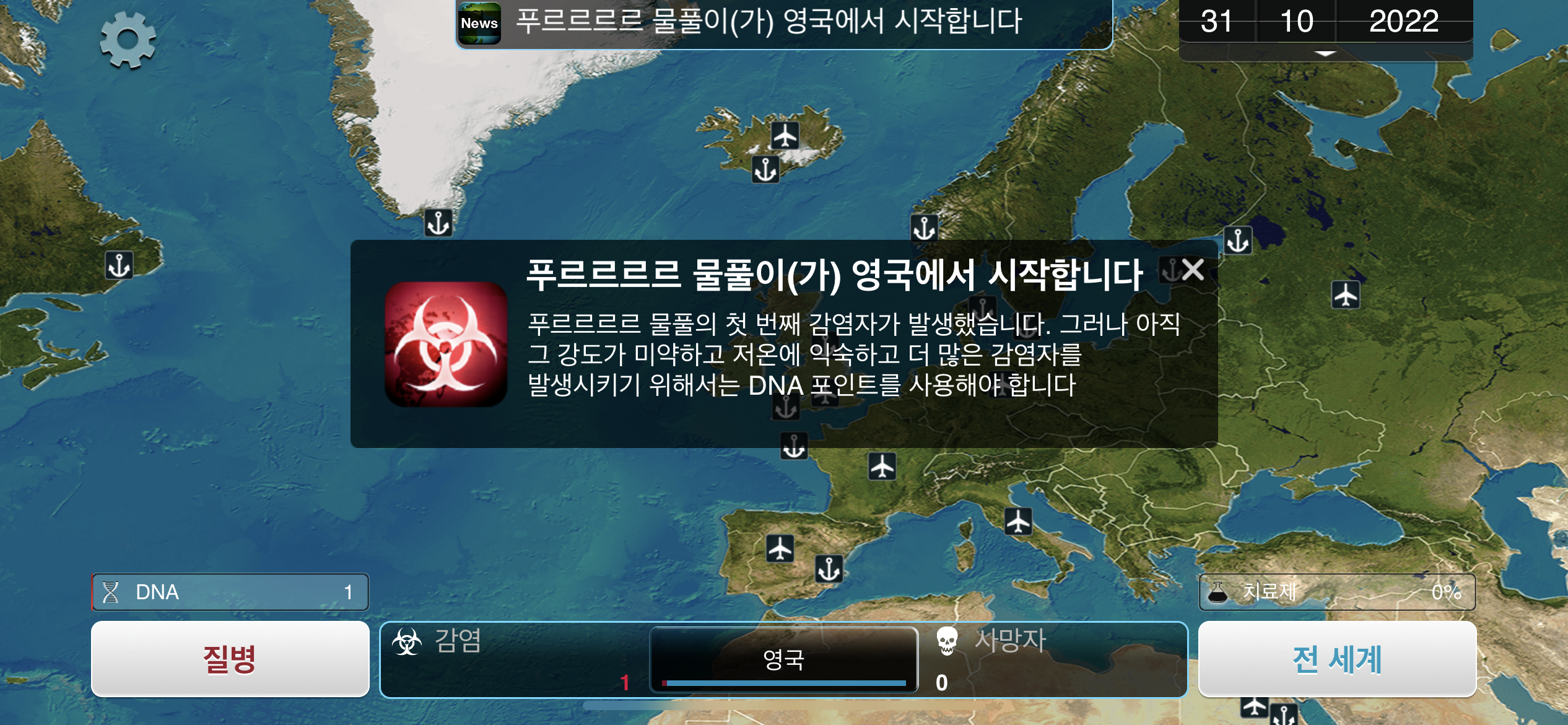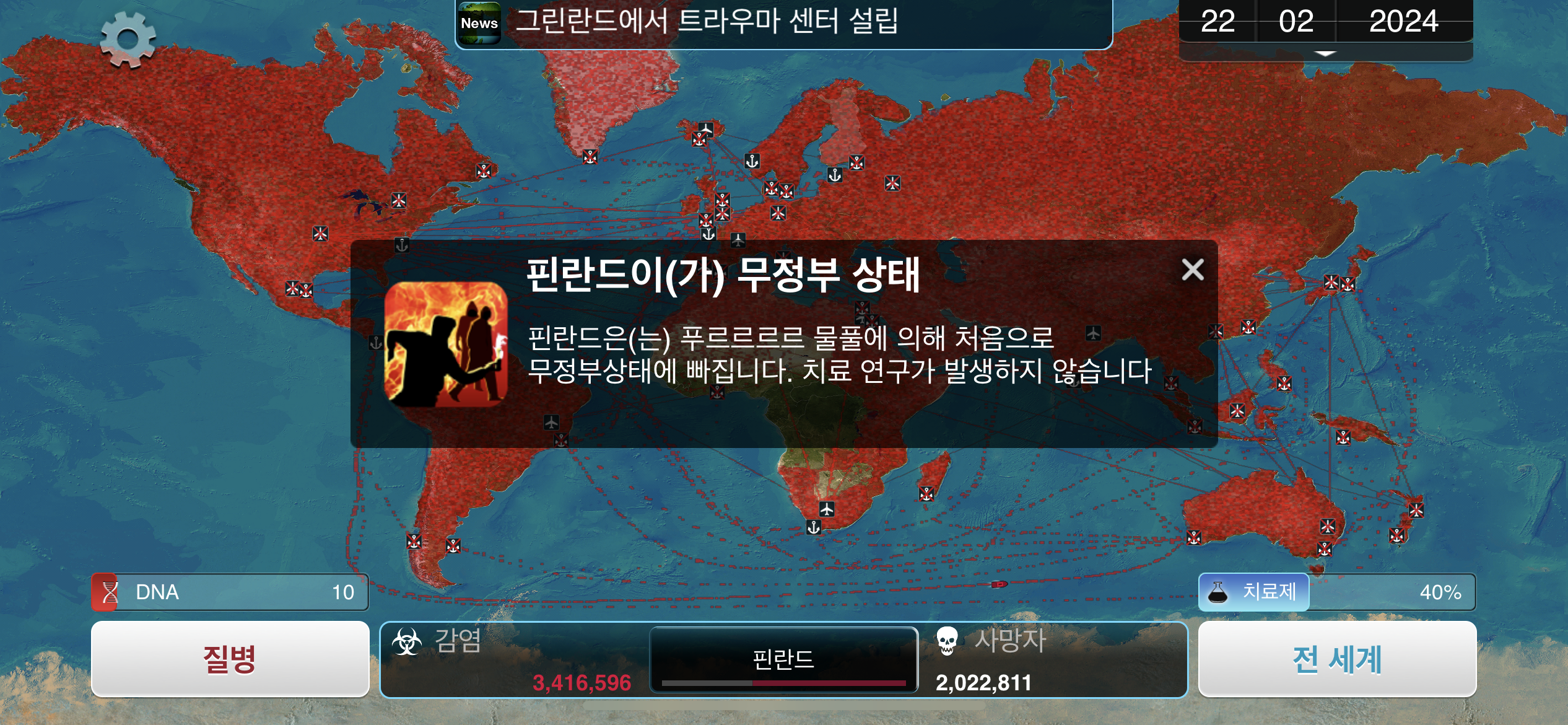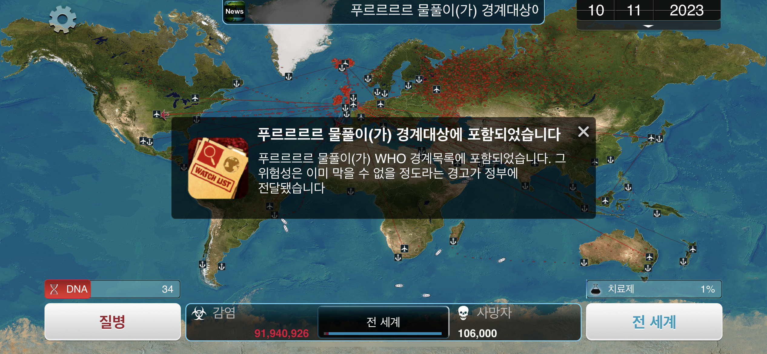33. 2024년 1월 10일. 사망자 수가 점점 늘어감에 따라 붕괴되는 국가들이 생기기 시작합니다. 이후 모이는 DNA 포인트로는 모든 증상을 진화하면 됩니다.