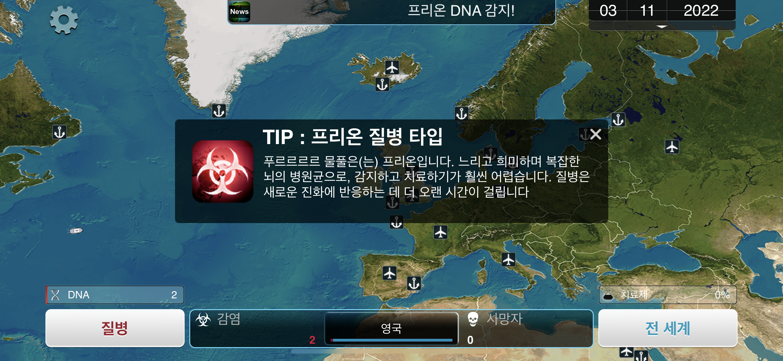 프리온은 다른 질병들과는 다르게, 변이의 효과가 뒤늦게 발생하며 치료제 개발이 보다 어렵습니다. 프리온의 메가 어려움 난이도의 클리어를 위해선 전과는 다른 특별한 방법이 필요했고, 그 방법을 찾게되어 공략을 작성합니다.