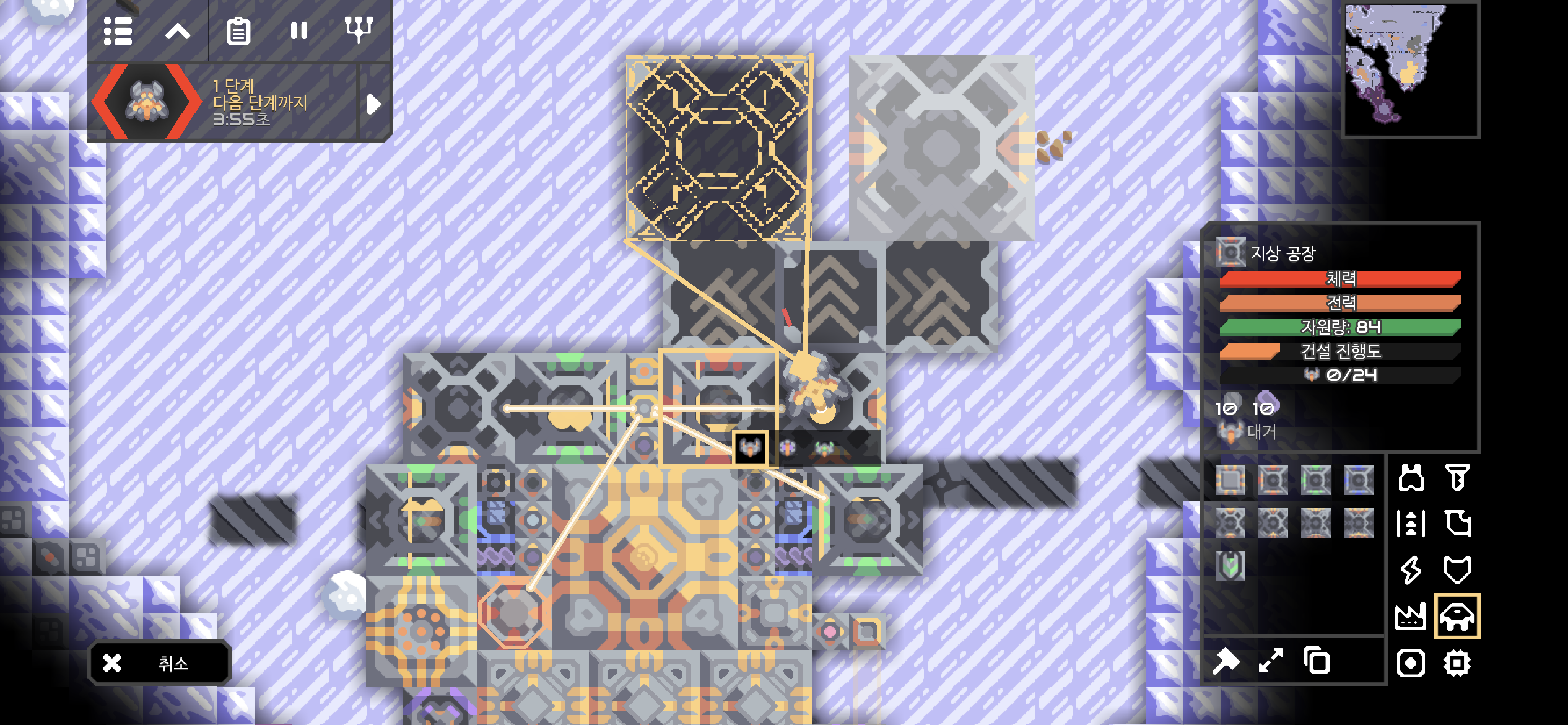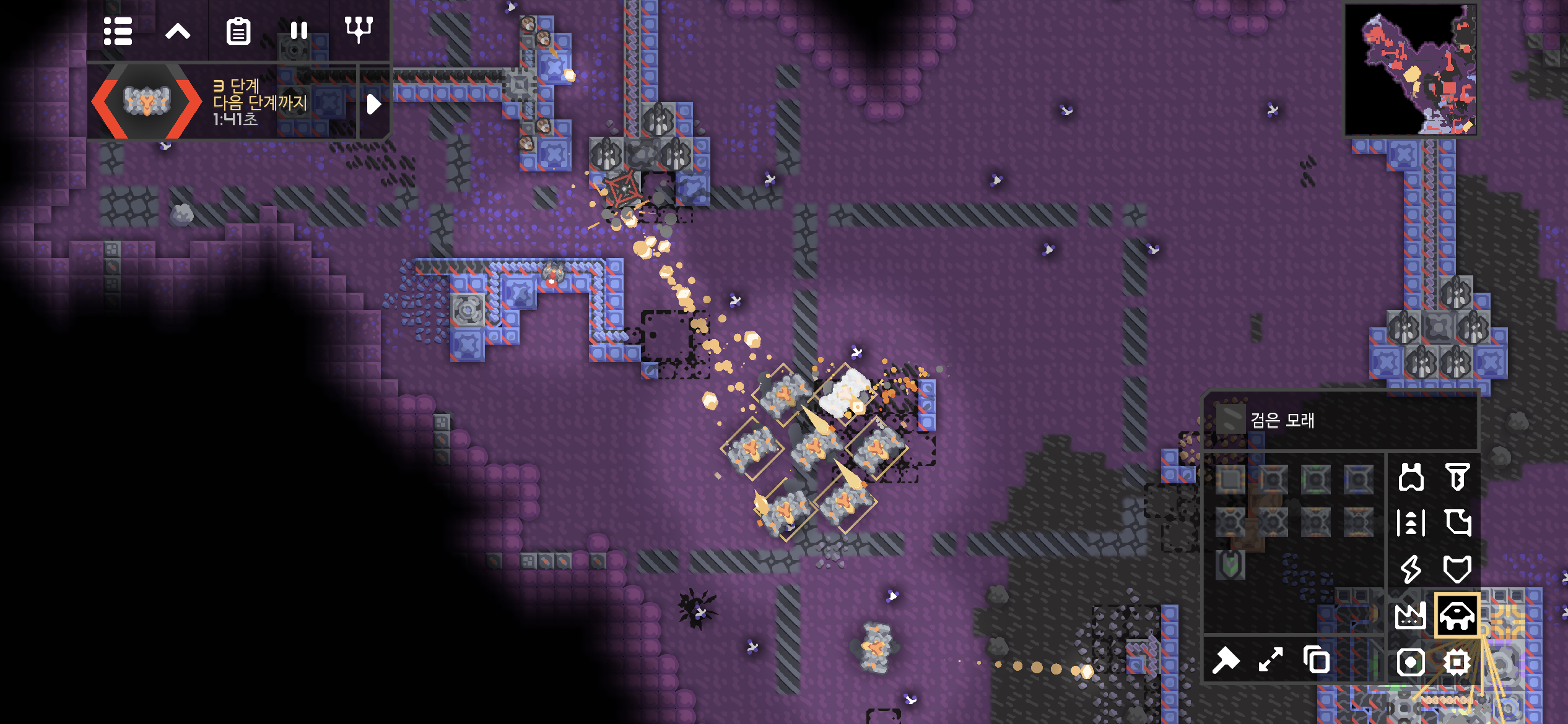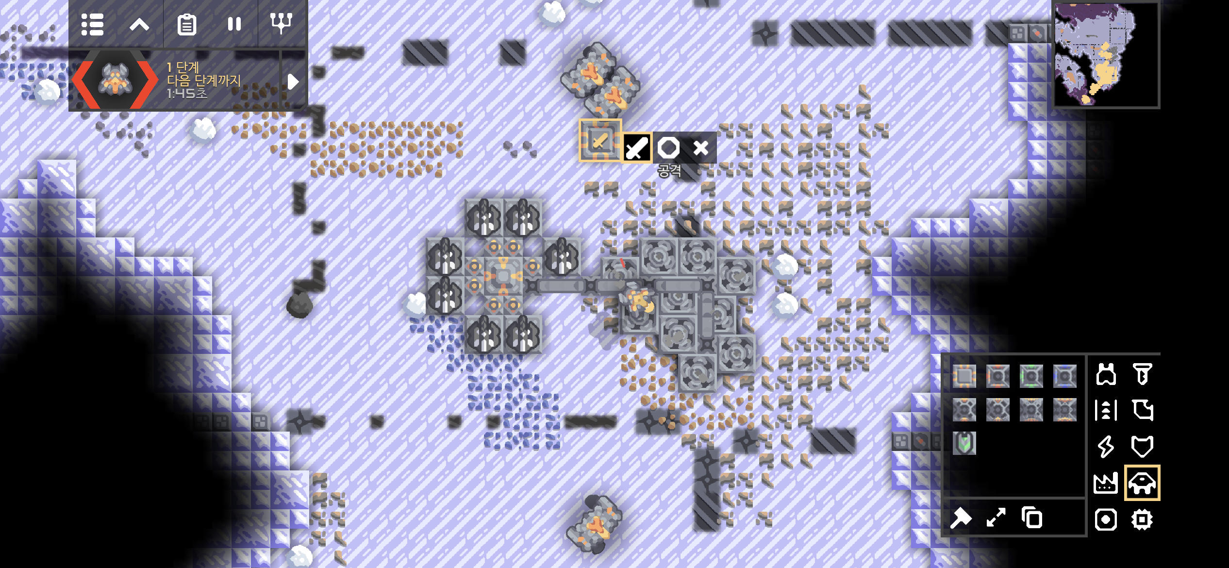 적에게 유닛 공장이 있으면, 단계 진행과 별도로 공장에서 생산된 적 유닛이 바로바로 공격해옵니다. 이를 대비해 스캐터를 꼭 지어둬야야겠네요.
