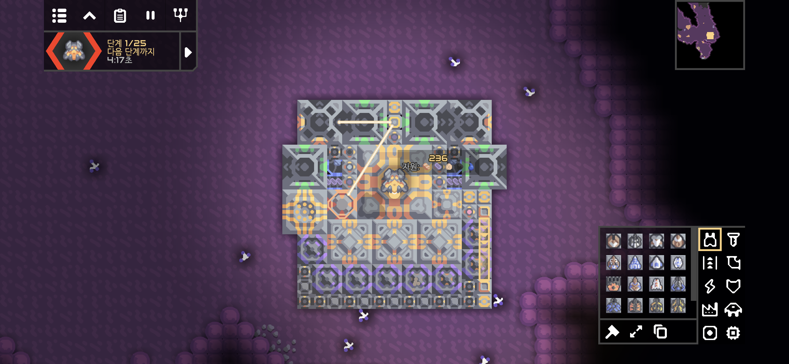 점령한 섹터 236 미니맵. 자원 생산 시설이 없어 아주 깨끗합니다.