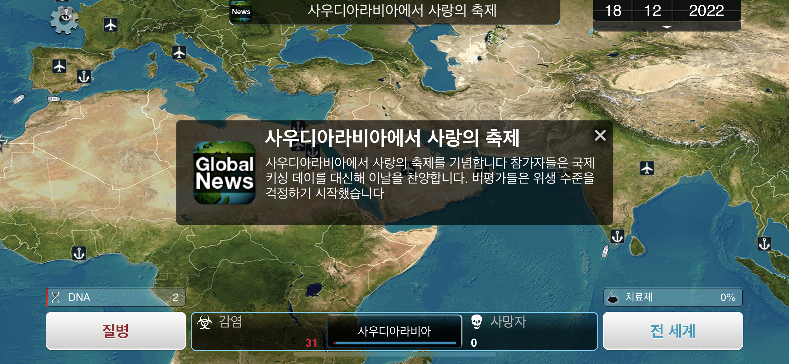4. 2022년 12월 18일. 사우디아라비아에서 사랑의 축제가 열린다고 합니다. 감염자 수가 조금 더 늘어날 예정입니다.