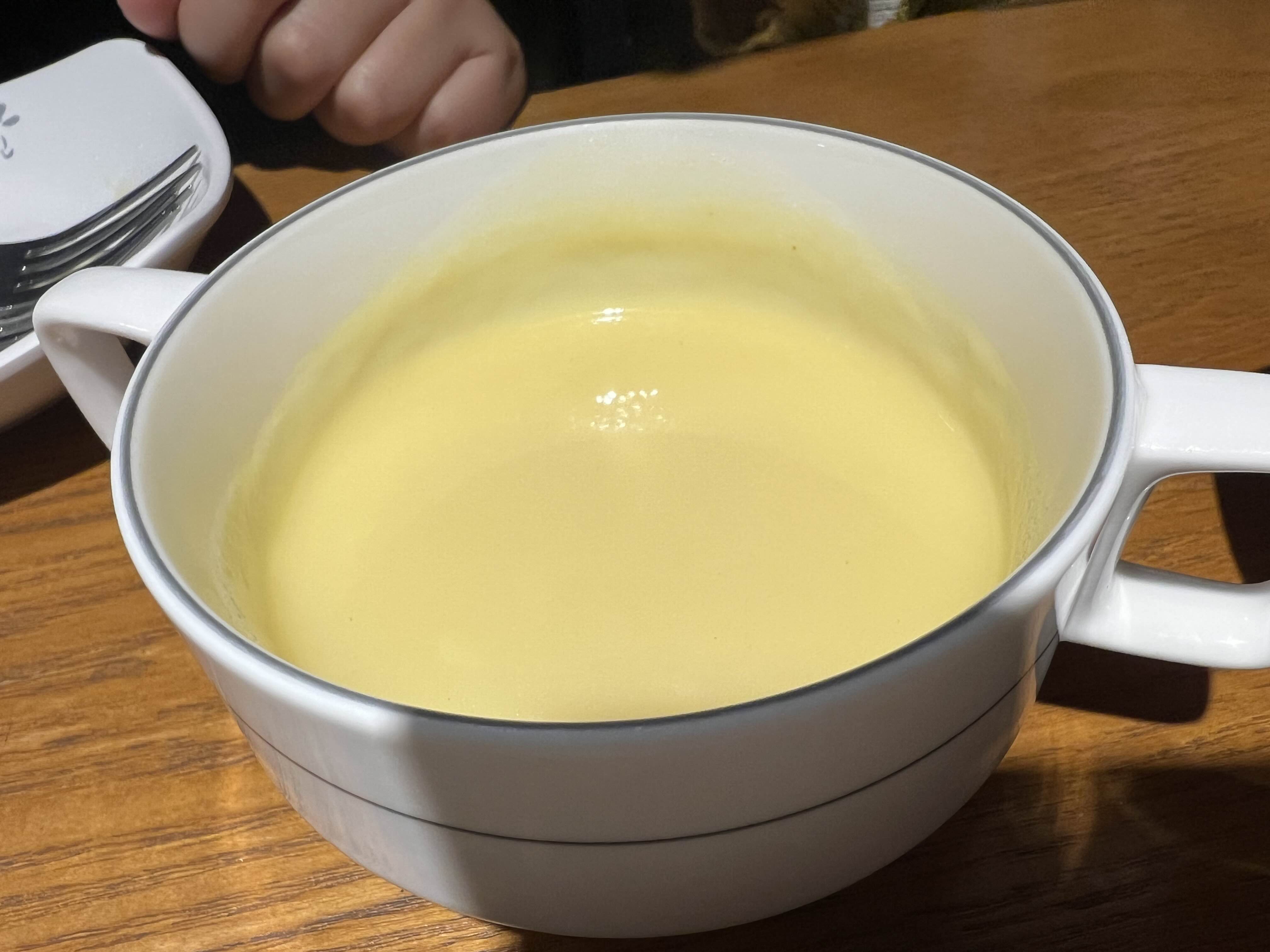 수제돈가스의 에피타이저로 나온 수프. 맛이 그럴듯 합니다. 모두가 상상할 수 있는 그 맛입니다. 아가에겐 줄 수 없는 수프!!