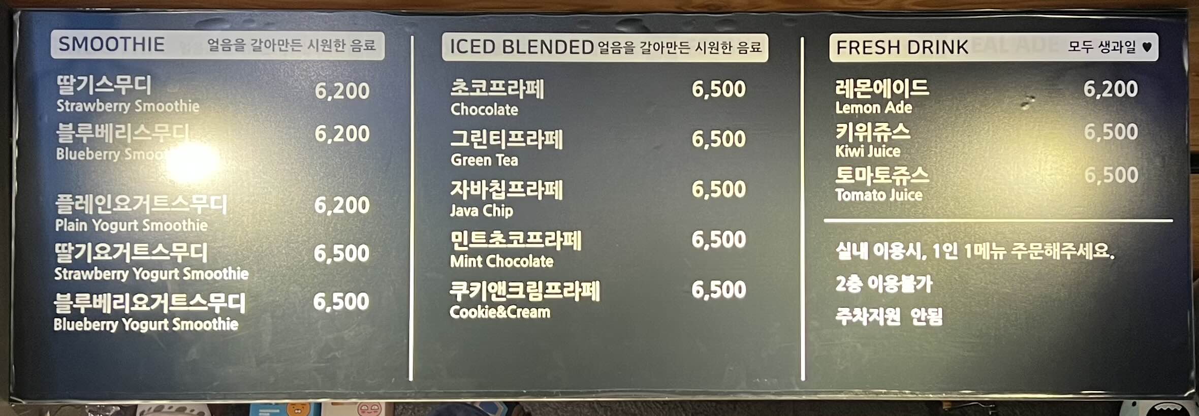 잘 정돈된 카페와 어질어질 할 정도로 다양한 메뉴.