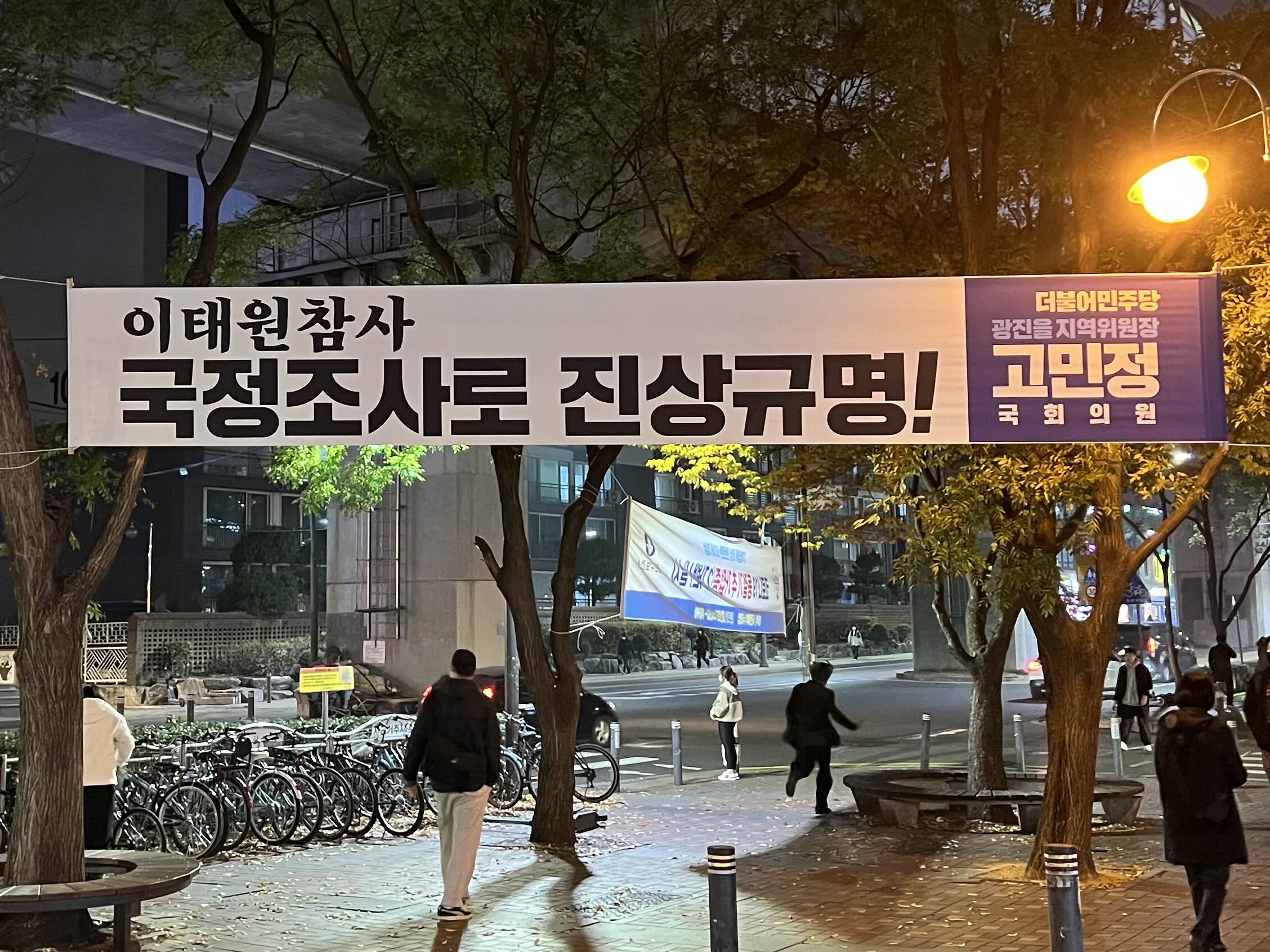 내용은 “이태원 참사, 국정조사로 진상규명!” 인데요, 이번달 들어서는 두번째 현수막입니다.