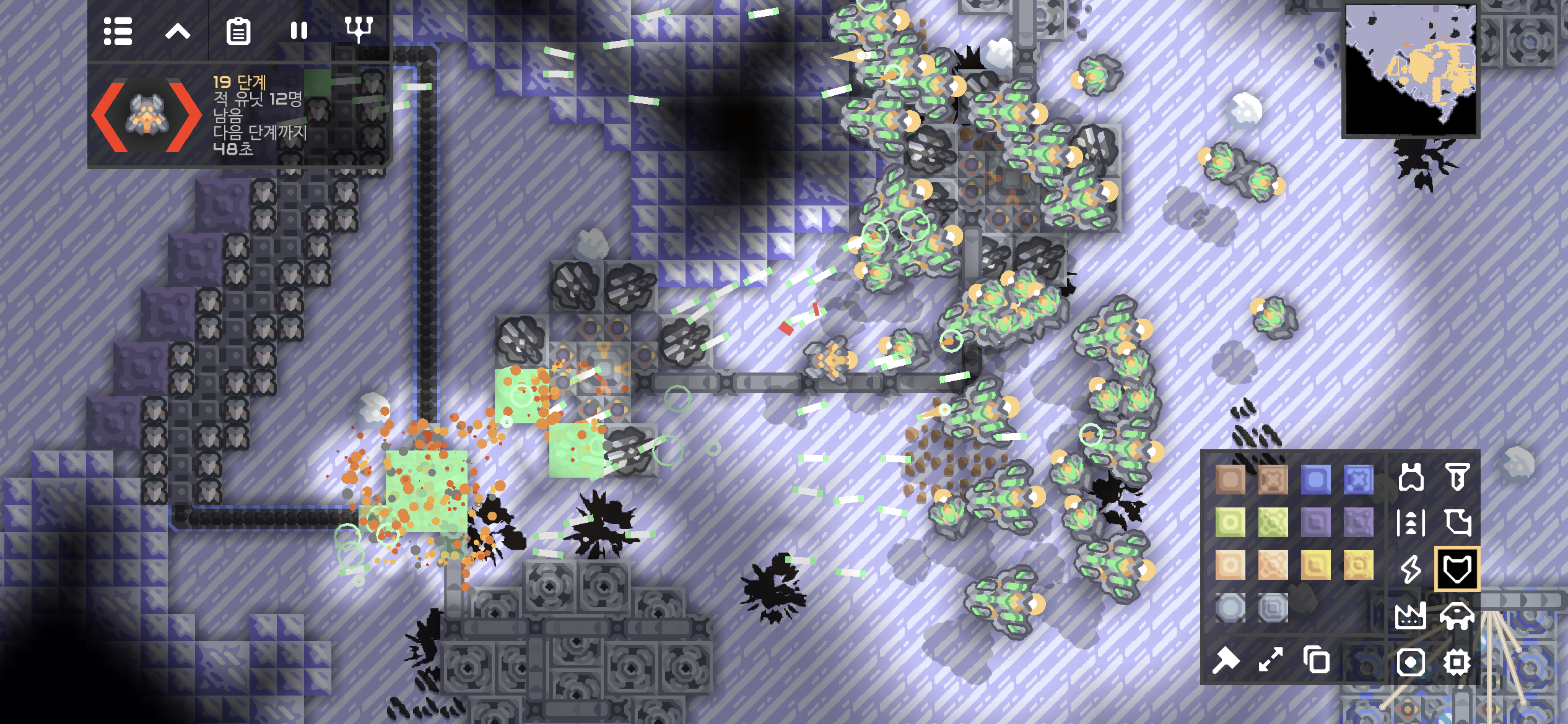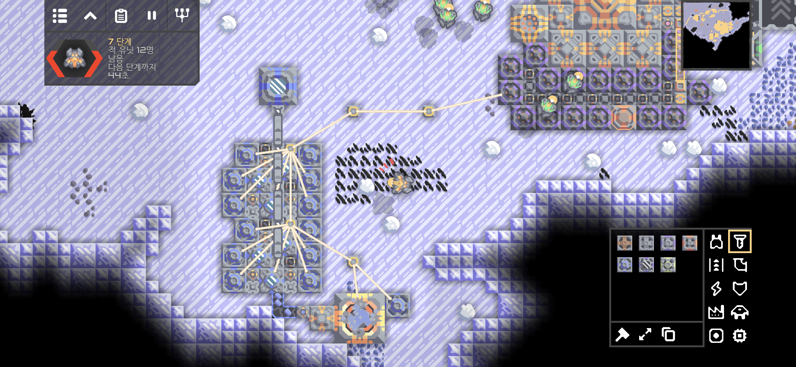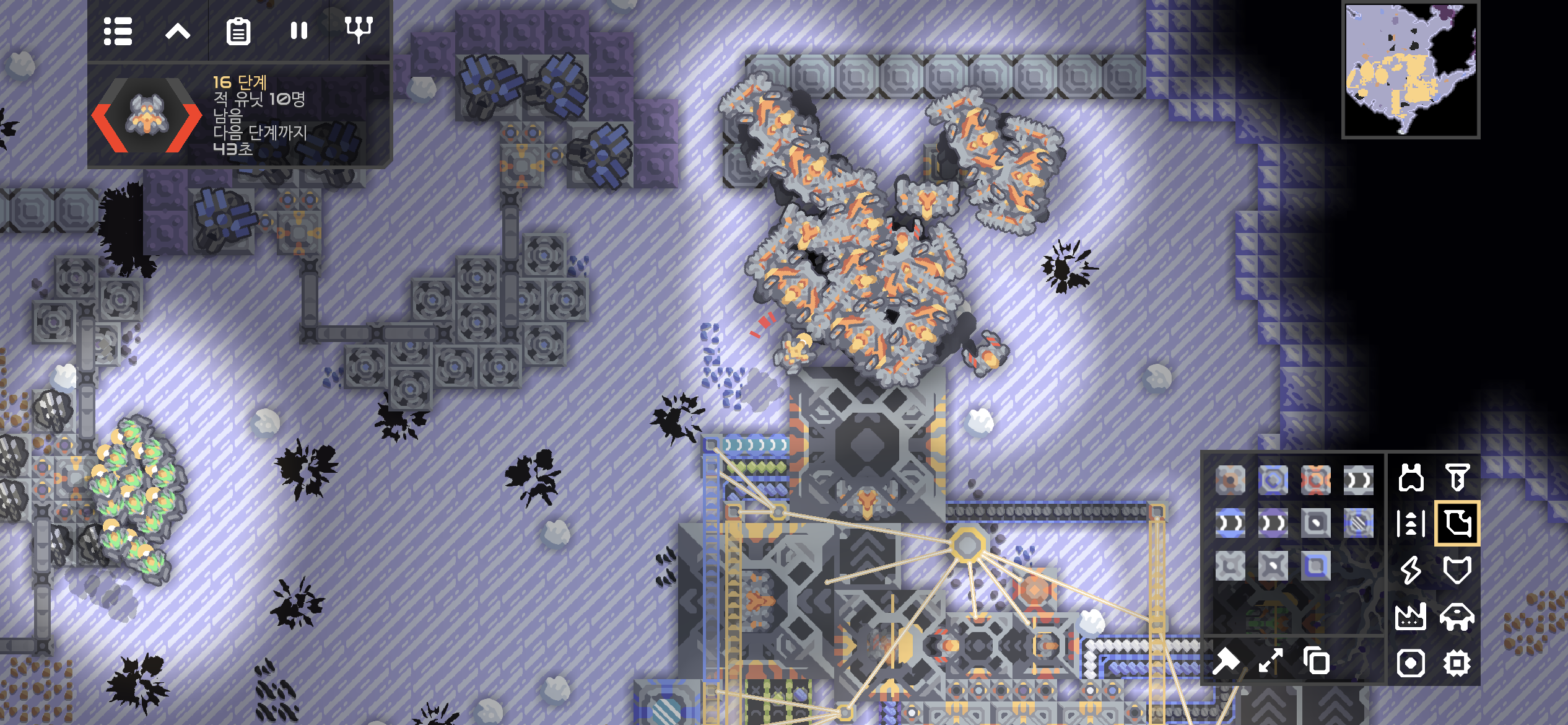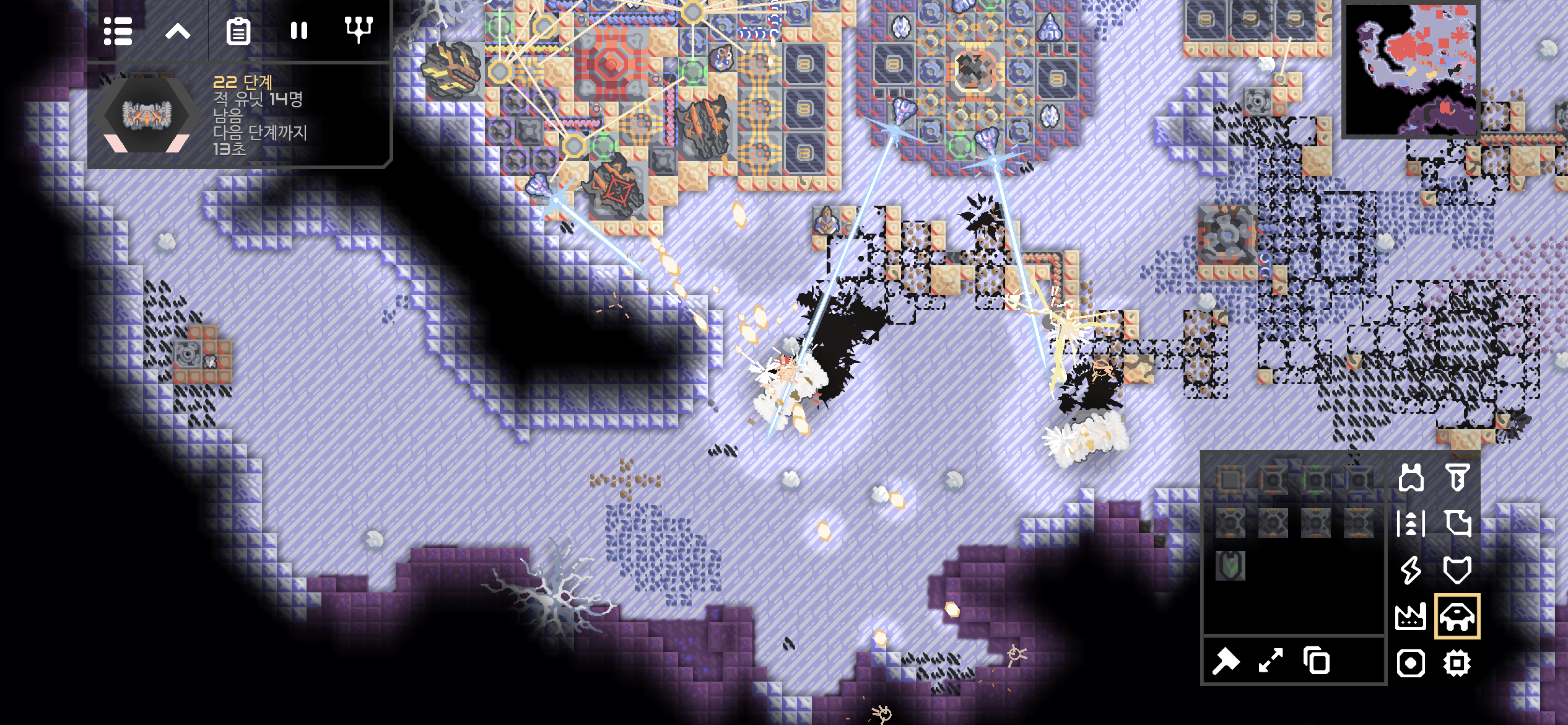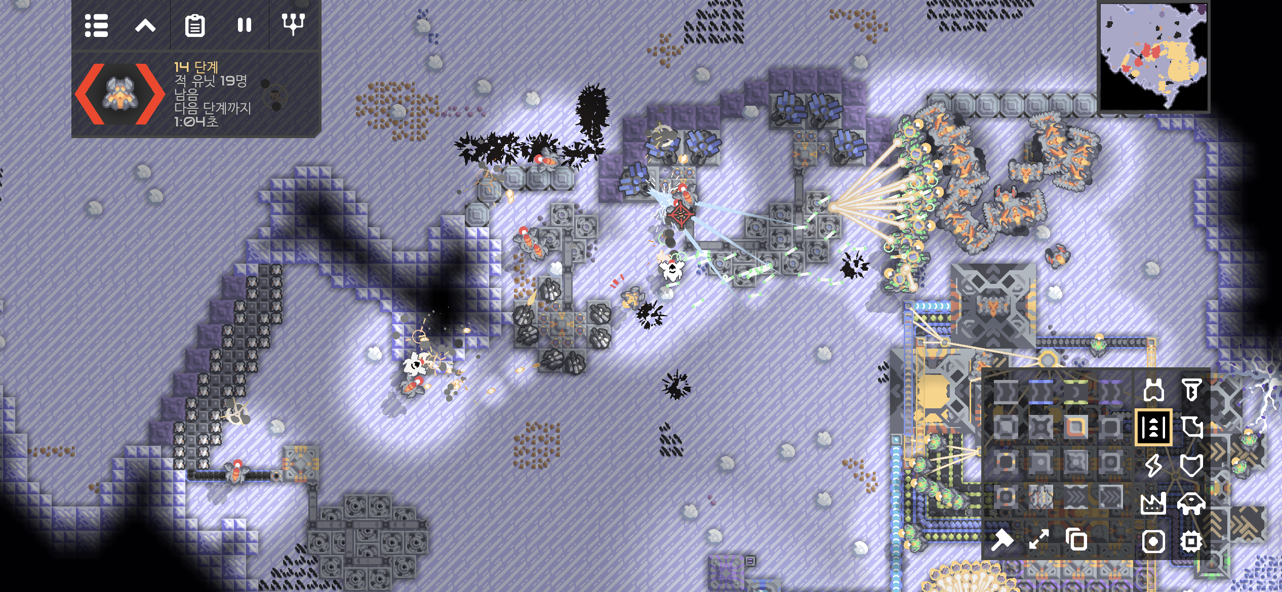 셉터의 생산 속도가 확실히 빨라졌습니다. 그 사이 14단계까지 진행되며 적의 공격도 제법 강해졌습니다.