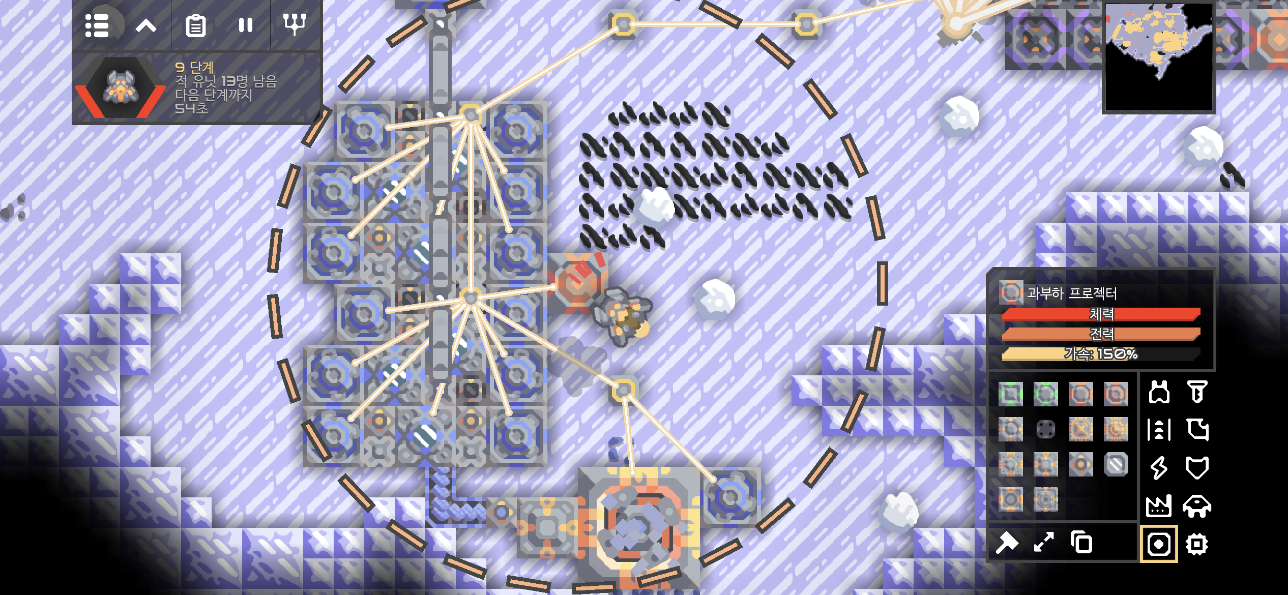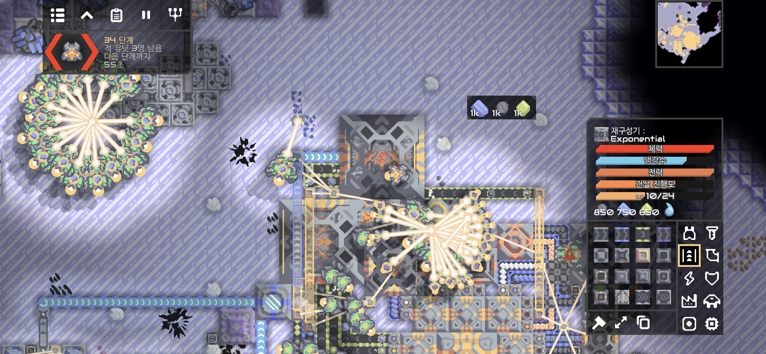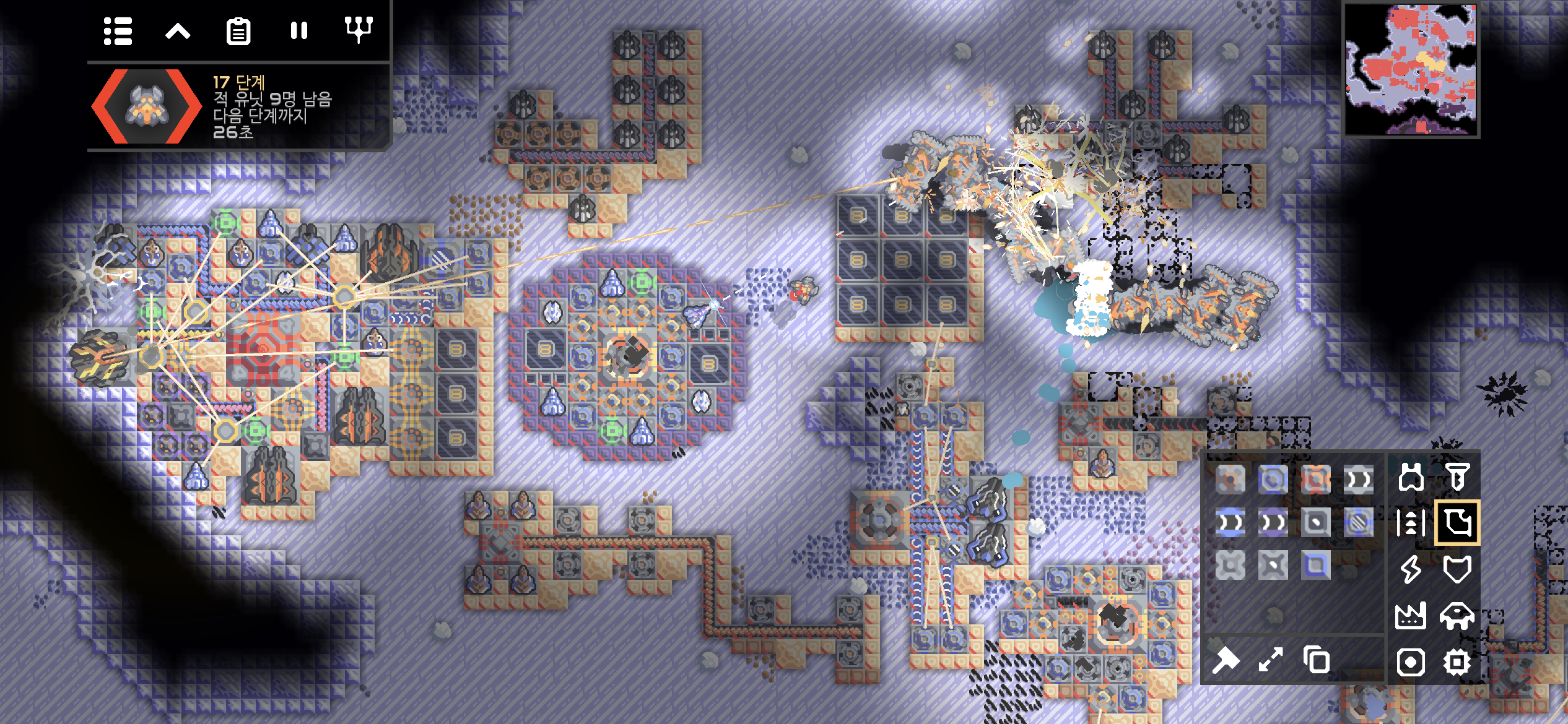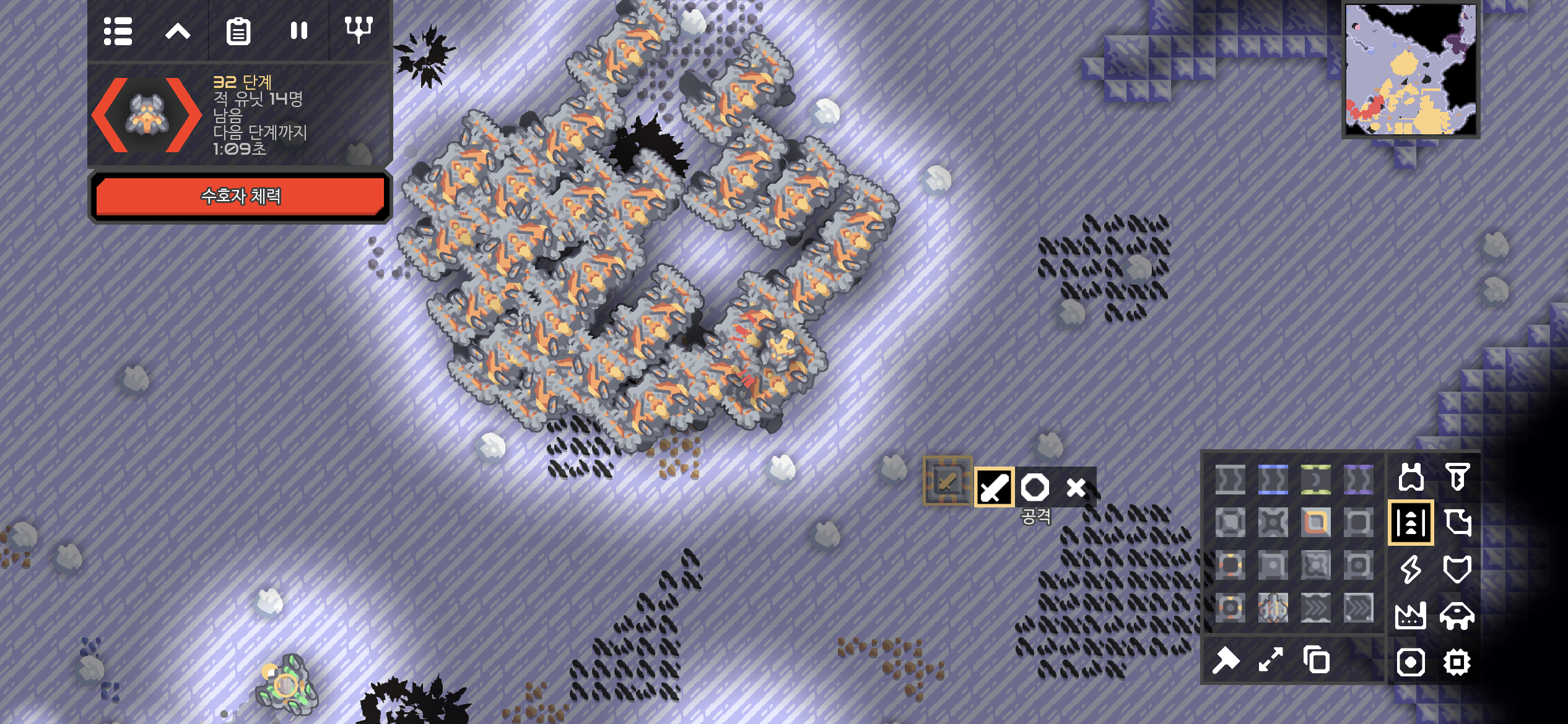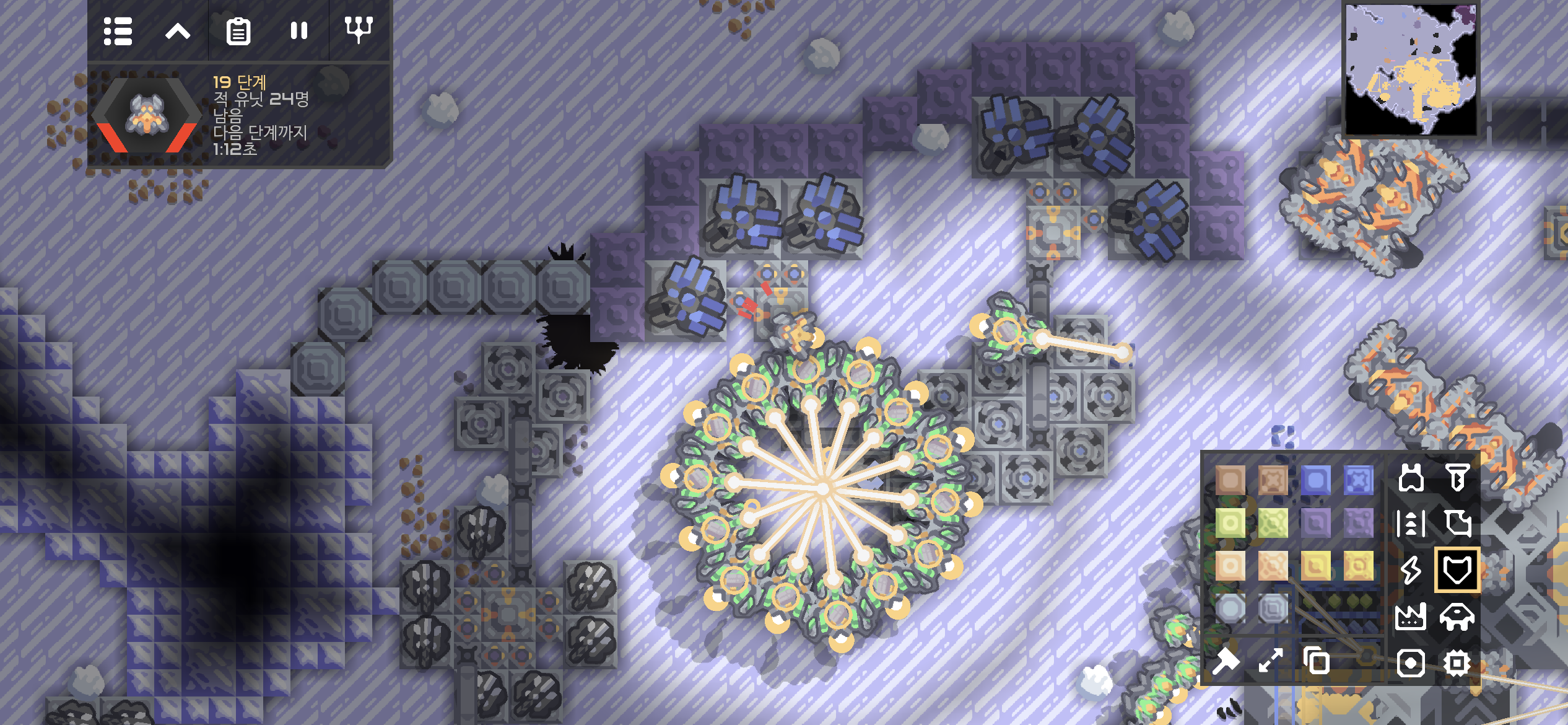 셉터의 생산 속도가 확실히 빨라졌습니다. 그 사이 14단계까지 진행되며 적의 공격도 제법 강해졌습니다.