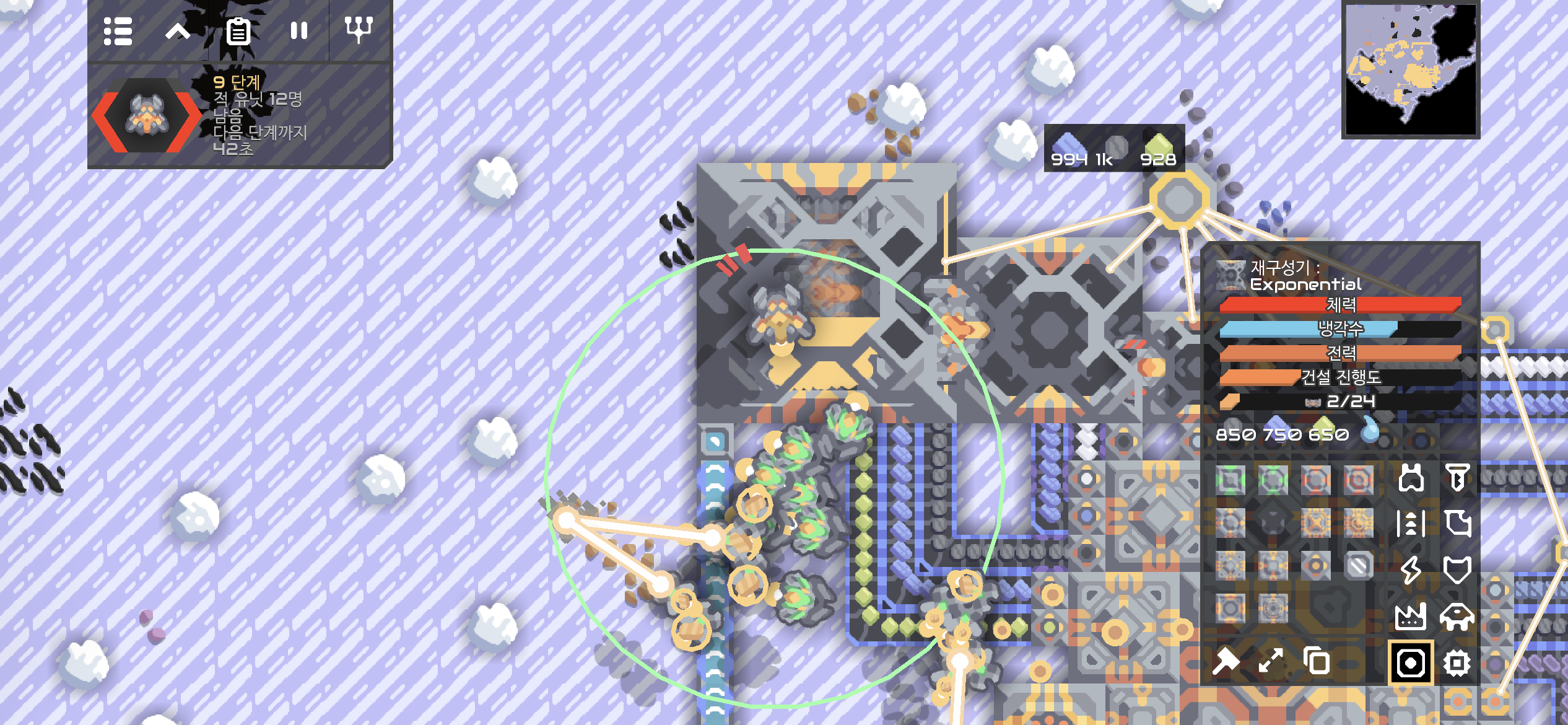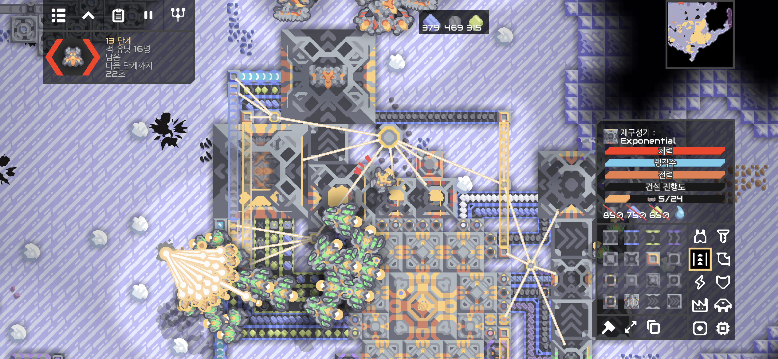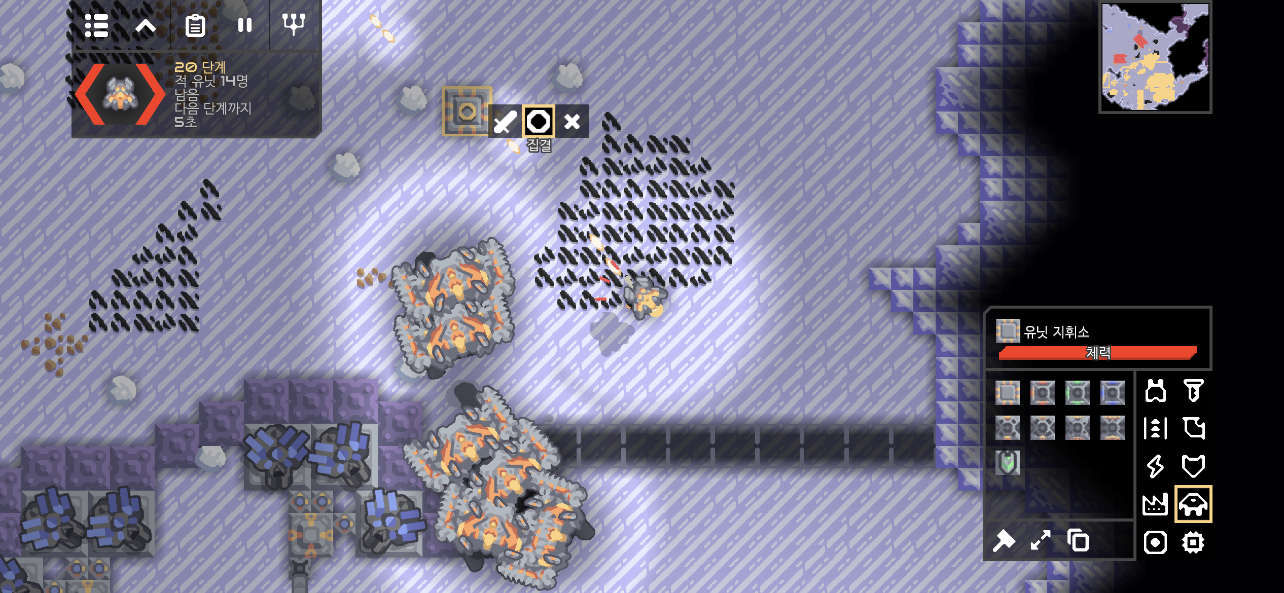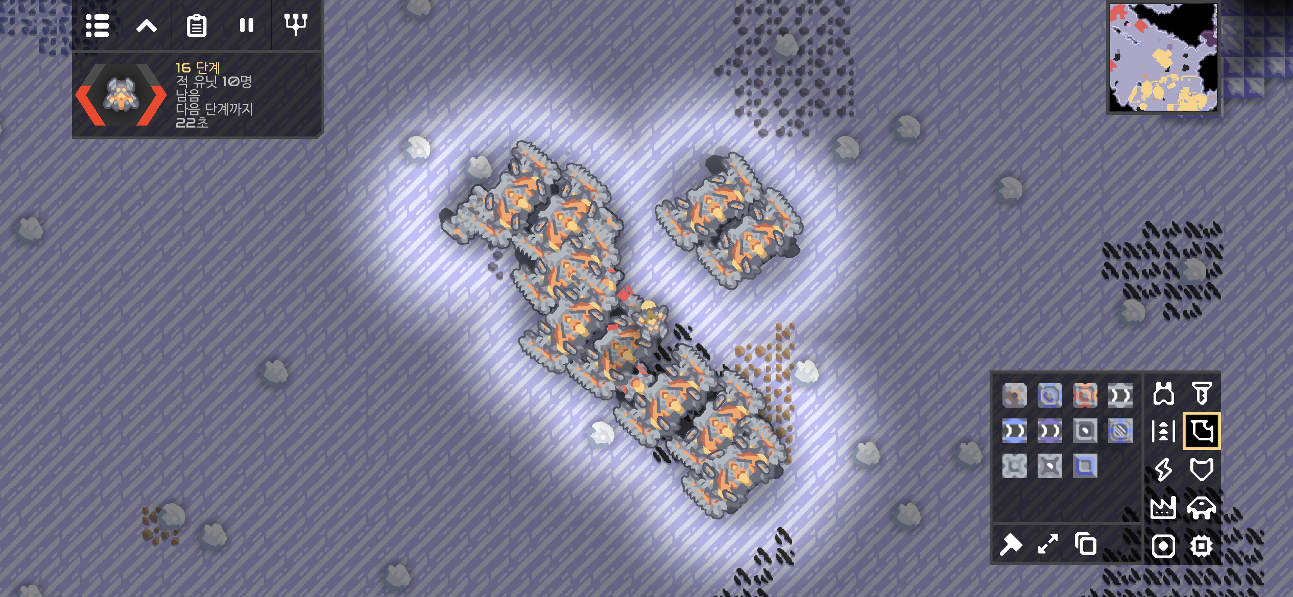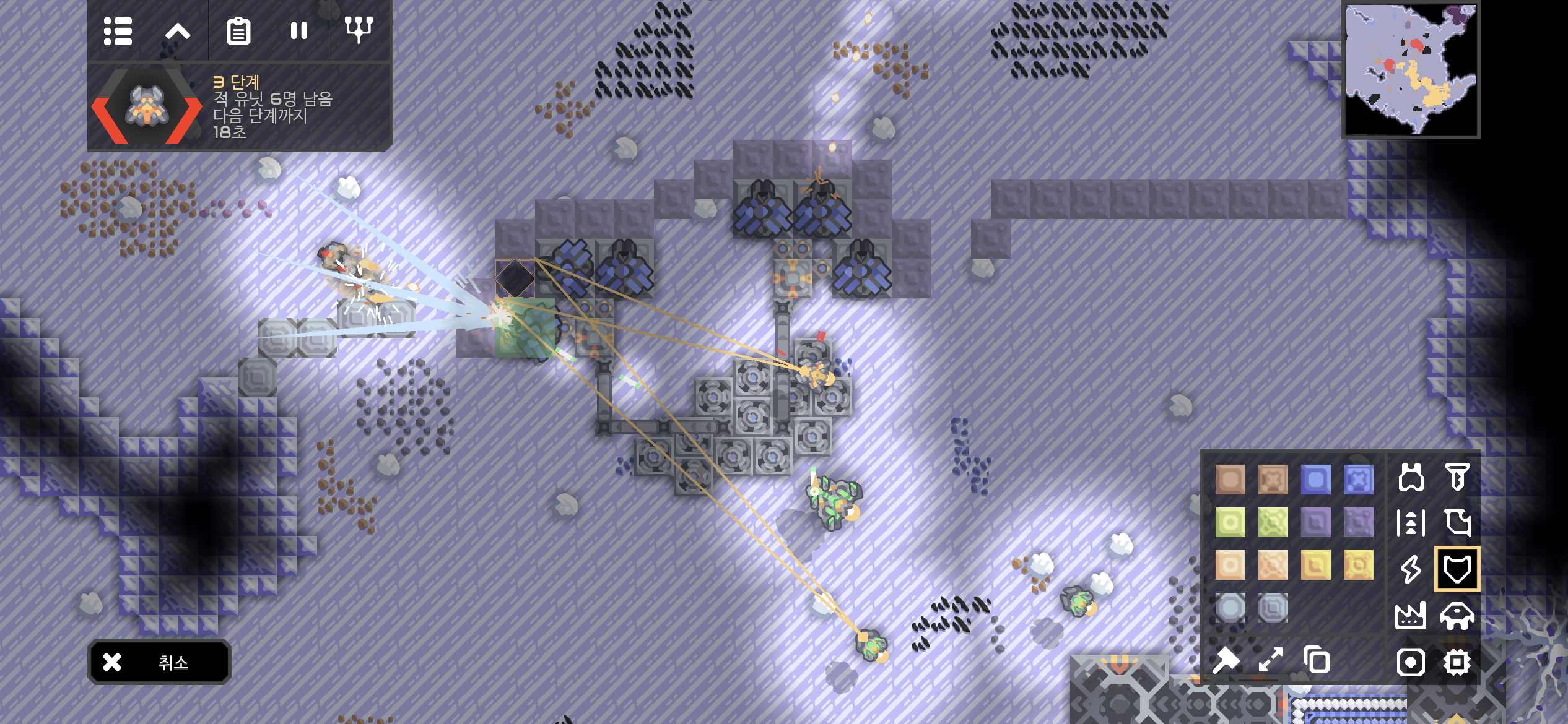 셉터의 생산 속도가 확실히 빨라졌습니다. 그 사이 14단계까지 진행되며 적의 공격도 제법 강해졌습니다.