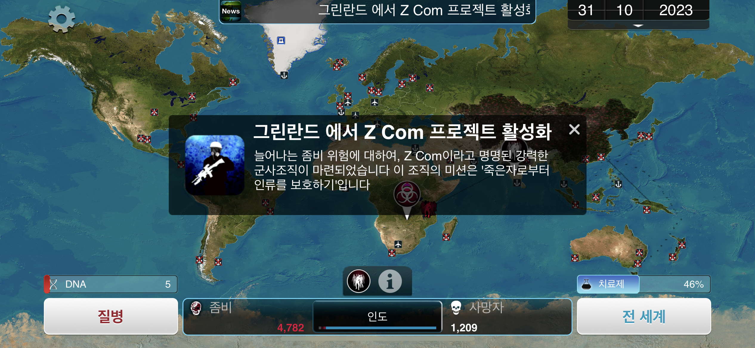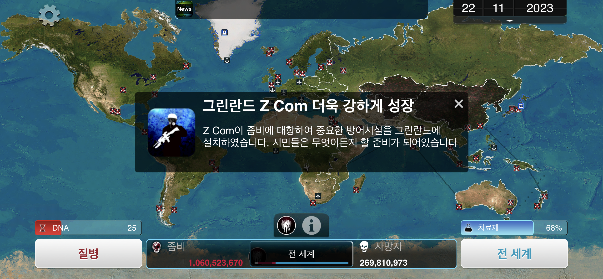 41. 2023년 11월 22일. 세계 최초의 Z com이 더욱 강하게 성장했습니다. 이제 좀비의 전투력을 높혀 그린란드의 Z com을 파괴해야 합니다.