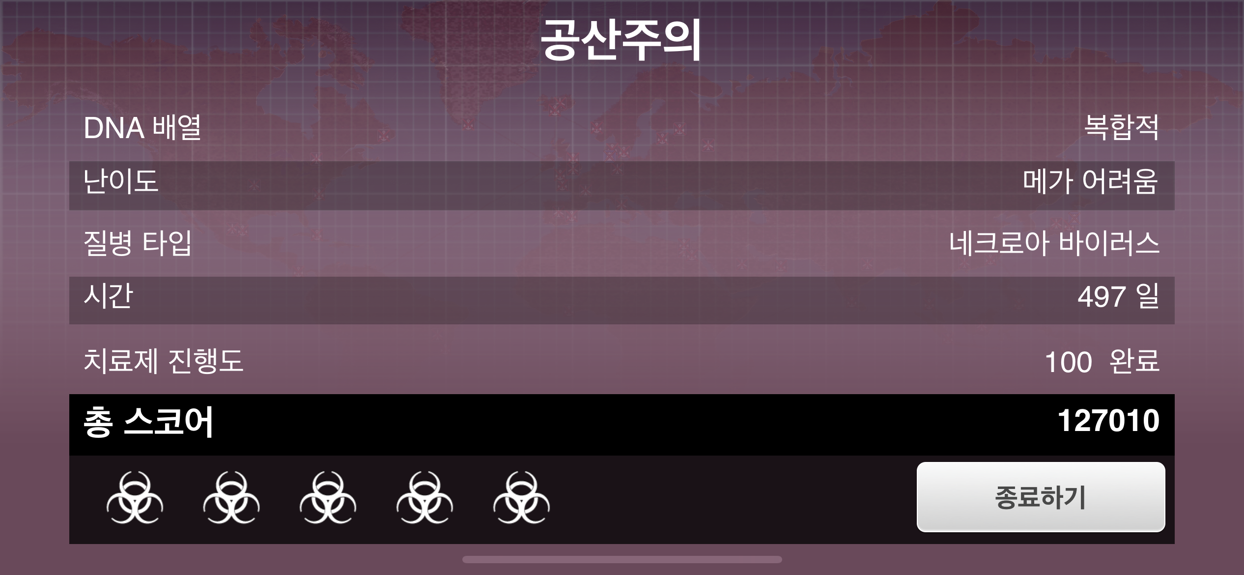 30. 2023년 9월 30일. 혼수상태 증상이 돌연변이하였습니다. 사실 이제부터 일반 증상의 변이는 크게 의미없습니다. 치료제는 어차피 완성될 예정이고, 좀비 증상들로 승부를 봐야 합니다.