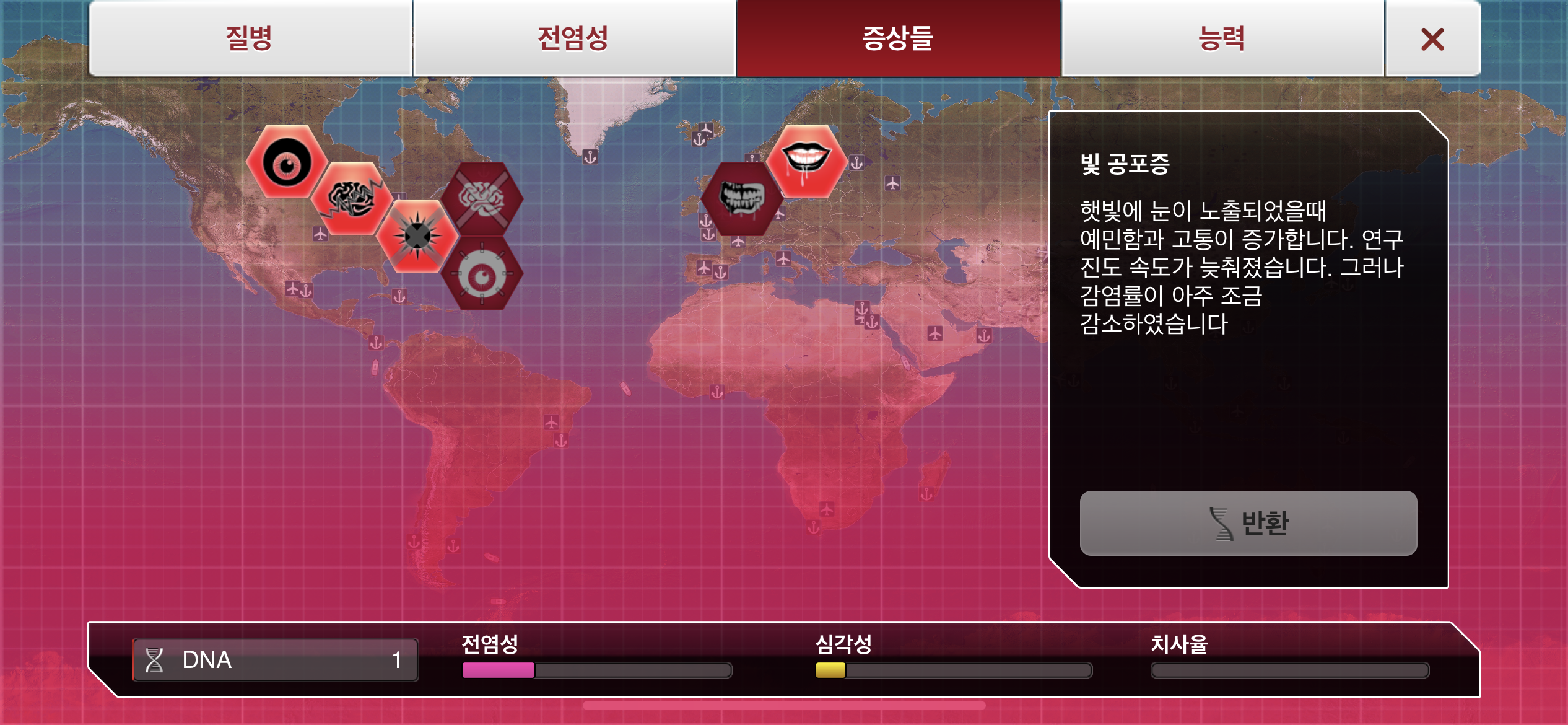 13. DNA 포인트가 모이는대로 빛 공포증까지 증상을 진화합니다.