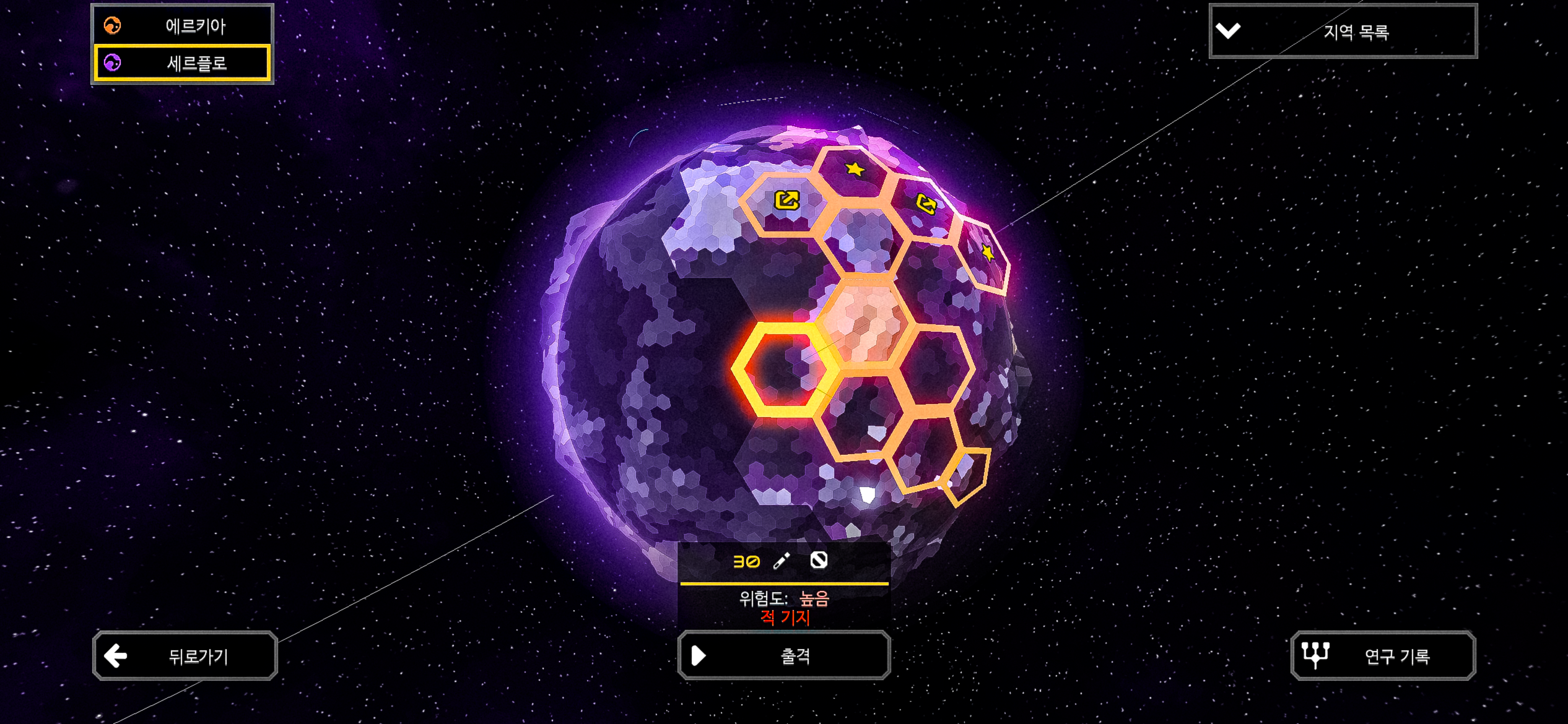 세르플로 행성 위험도 높음의 섹터 30 적 기지를 공략합니다.