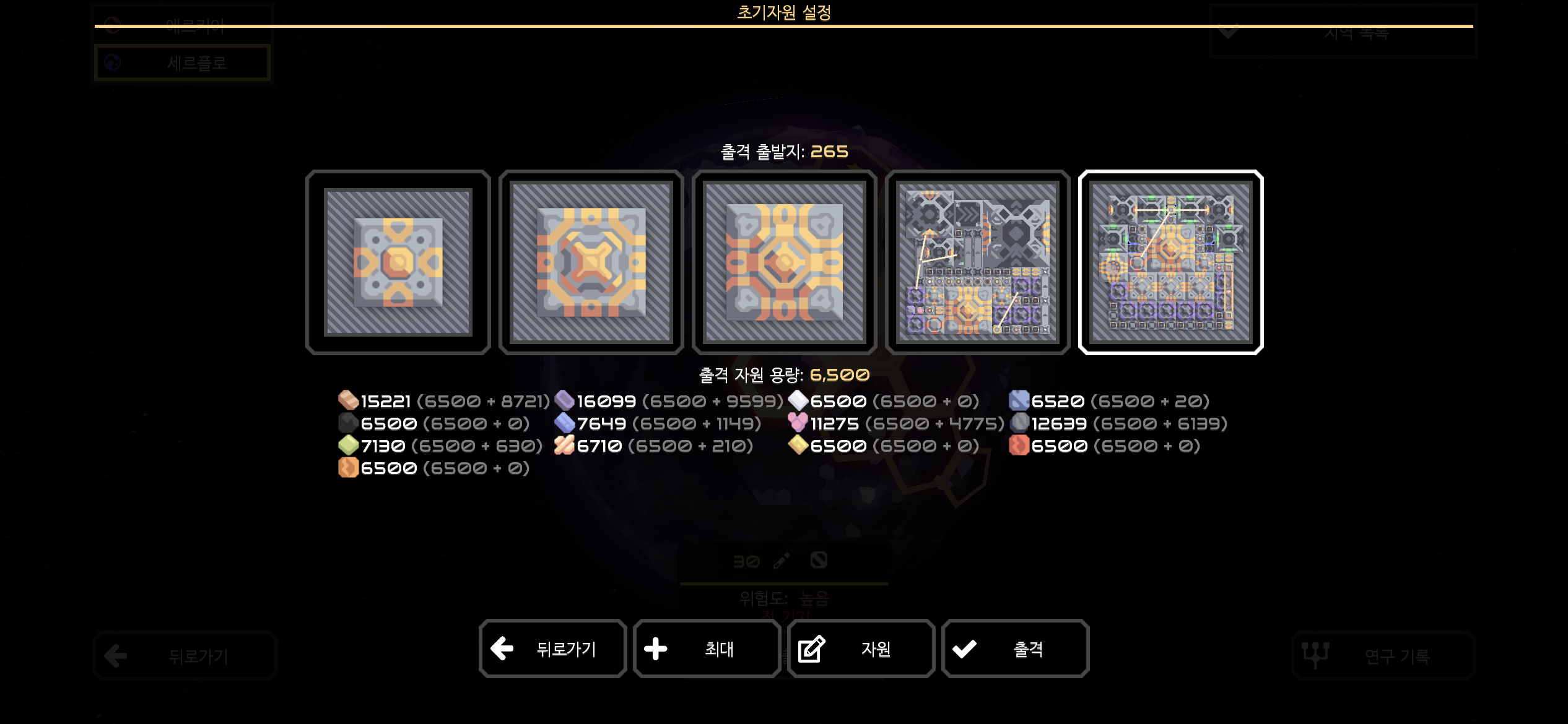 적 기지를 짧게 감상했으니 전초기지로 이동해 자원 출격을 받습니다. 목적지는 섹터 30!