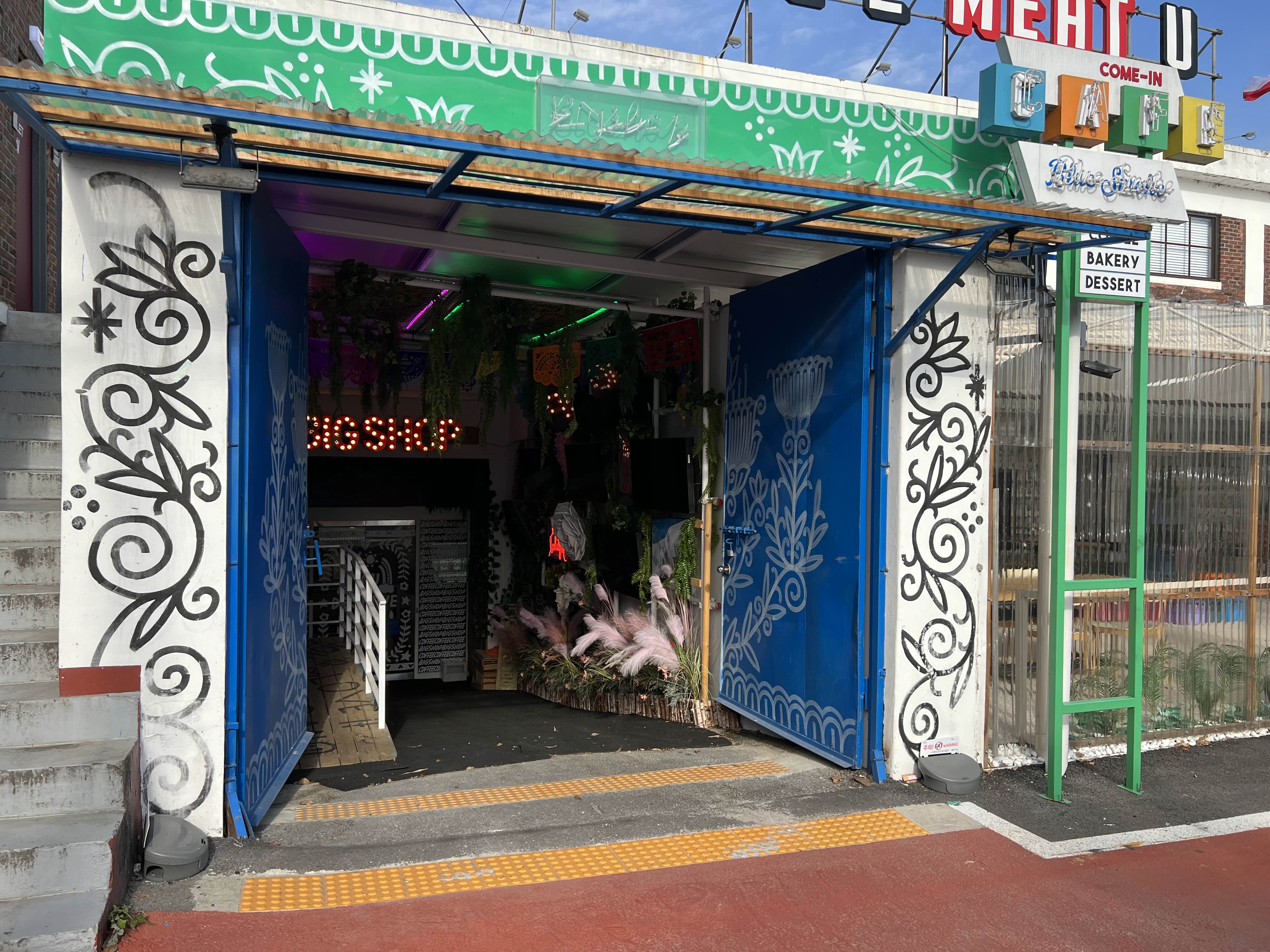 2층 블루스모크에서 기분 좋은 식사를 마치고 내려왔습니다. 아까는 보이지 않았던 예쁜 입구가 보이네요.