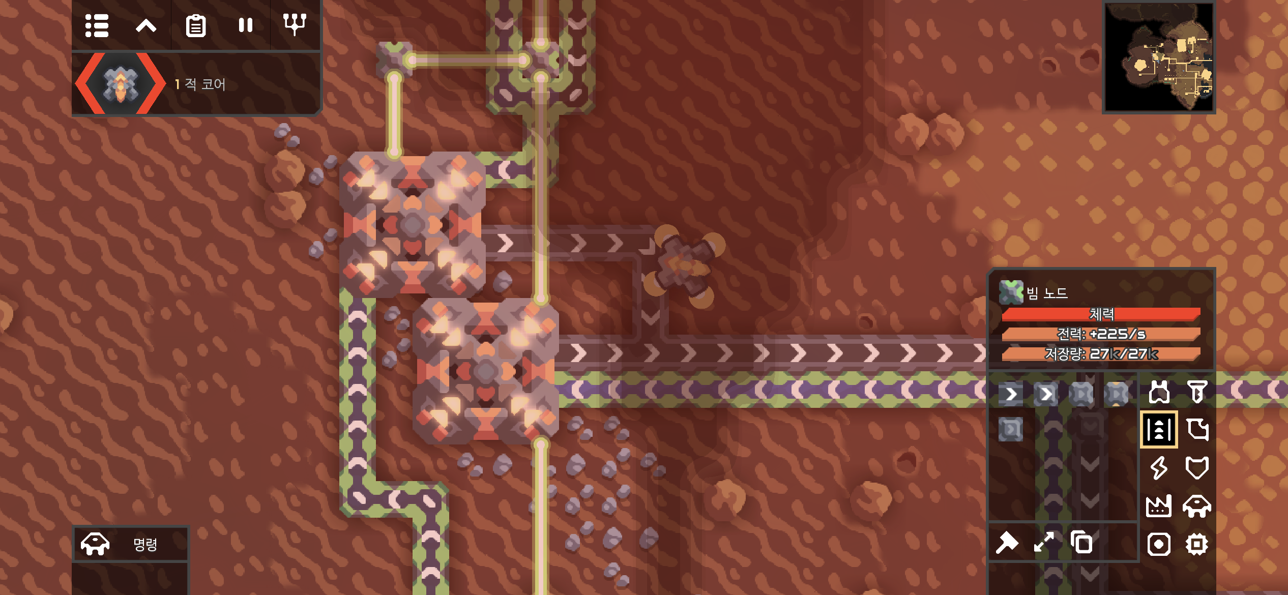 적 코어 위치에 아군의 코어를 건설하고, 여러 시설을 건설하며 발전합니다. 모이는 자원으로는 연구를 진행했어요.