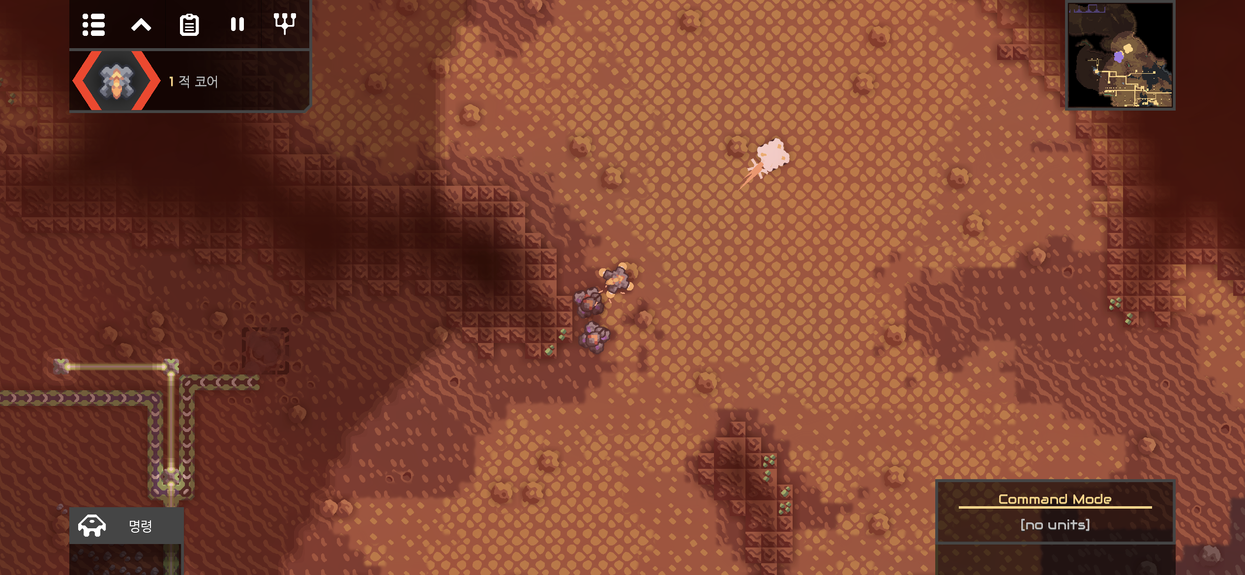 세르플로 행성과는 달리 미니맵이 안개로 가려져 있어 불편합니다. 유닛으로 지역을 정찰해 안개를 걷어야 합니다.
