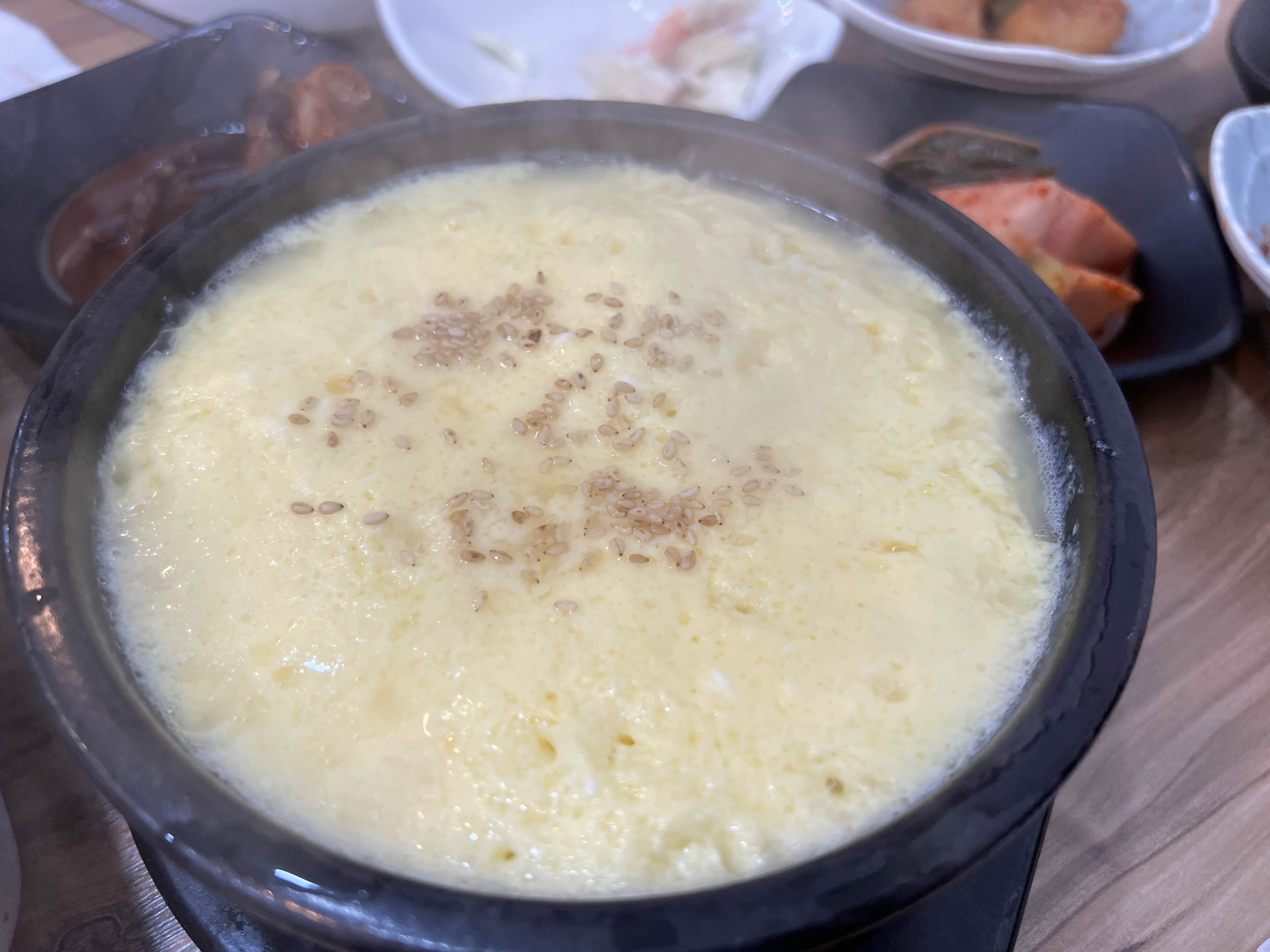 계란찜을 좋아하는 아가를 위한 메뉴! 꽃게탕의 뻘건 국물을 아가는 먹지 못하기에 따로 주문했습니다.