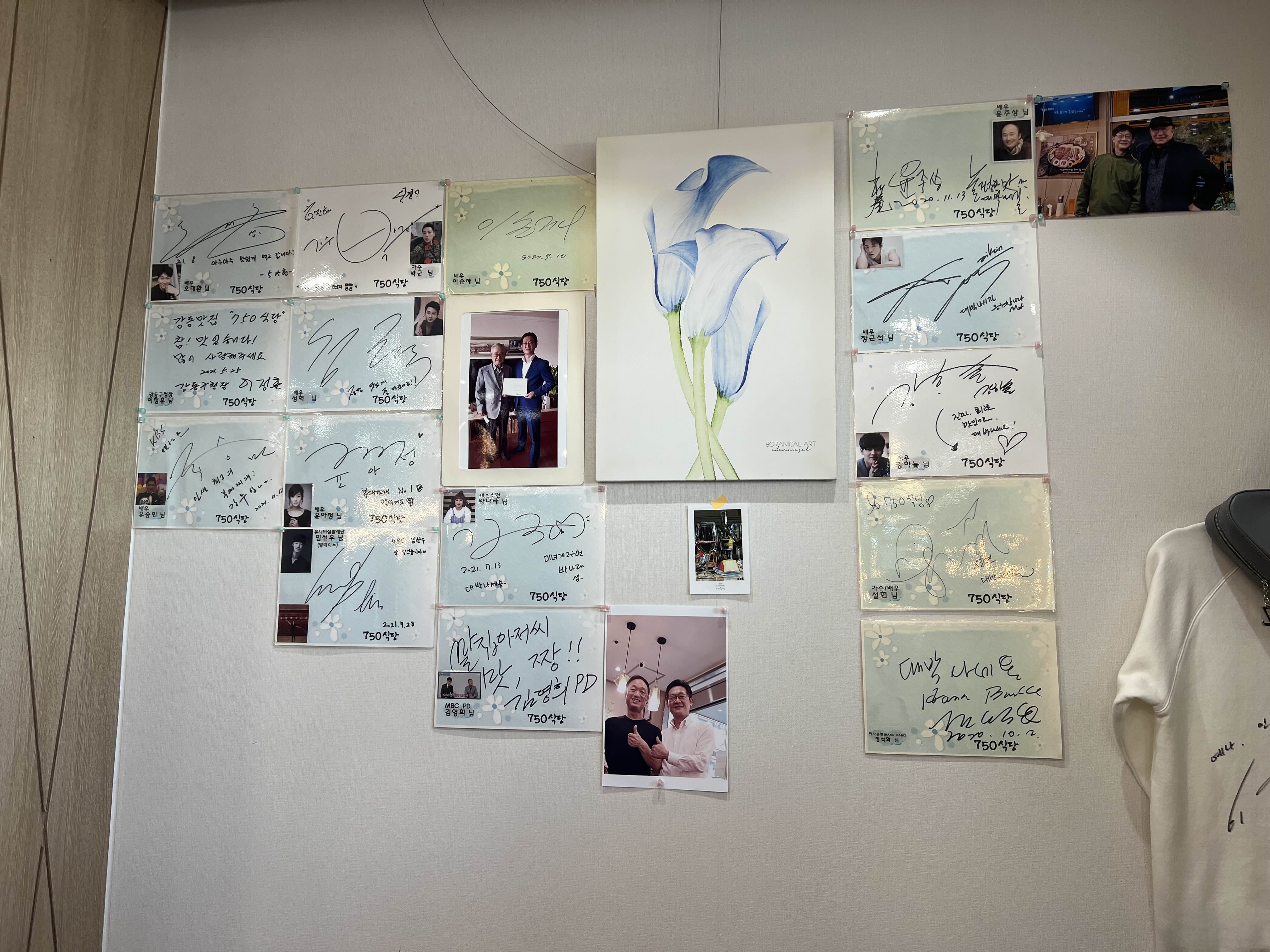 계산을 하고 나오는데 연예인들의 싸인이 벽을 한가득 채우고 있습니다.