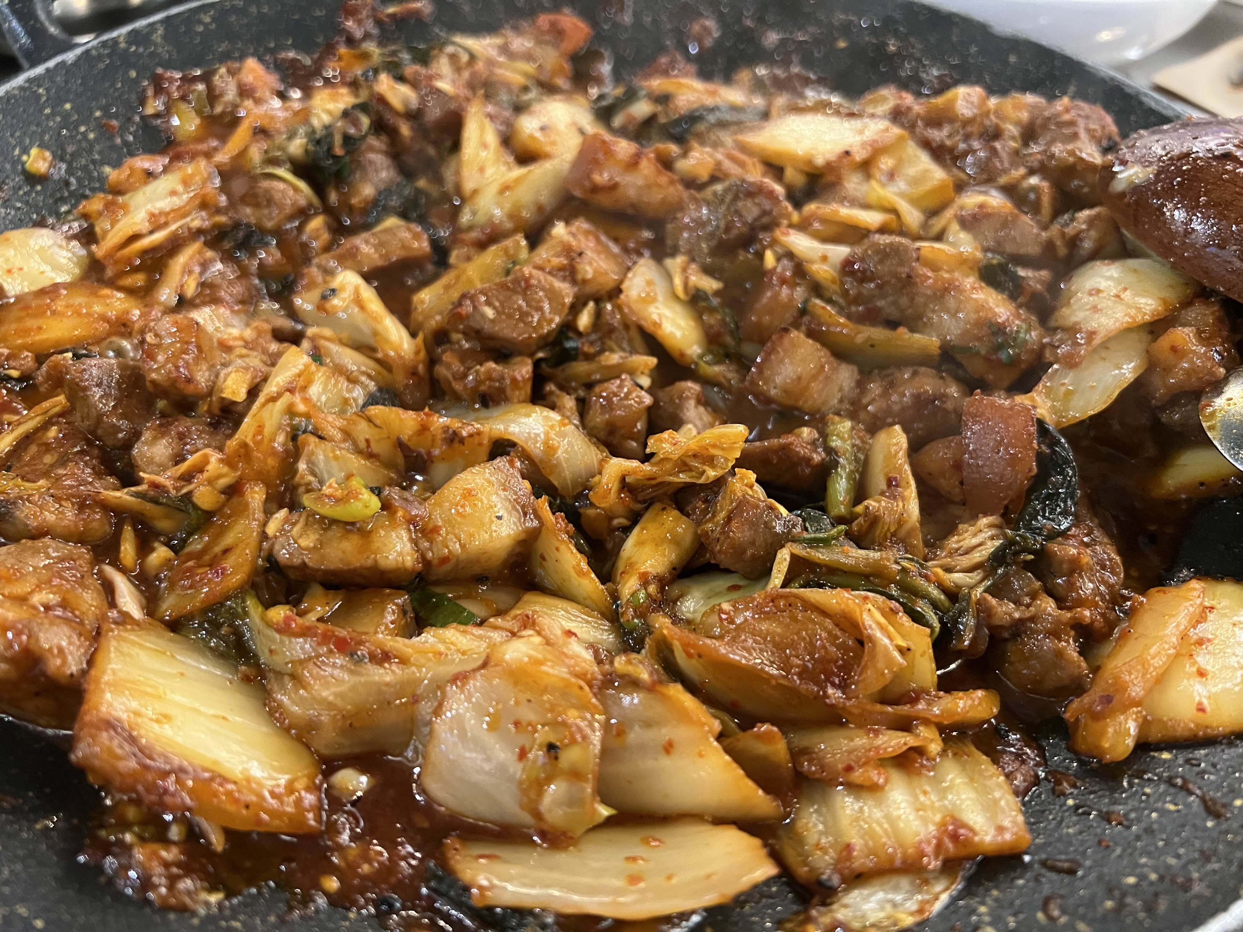 매운 음식을 전혀 먹지 못하는 ‘맵찔이’인 본인이 전혀 맵다고 느끼지 못했고, 오히려 살짝 달짝지근하게 맛있었습니다. 기름진 돼지고기의 맛을 김치가 잡아주며 함께하니 정말이지.. 무한으로 먹겠더라구요.