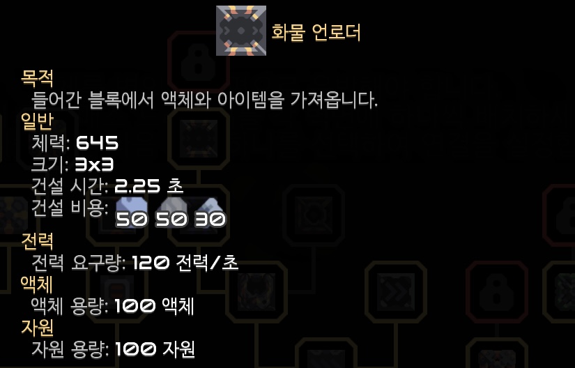 화물 로더와 화물 언로더. 자원을 화물에 저장하는 화물 로더는 별도의 전력이 필요하지 않습니다.